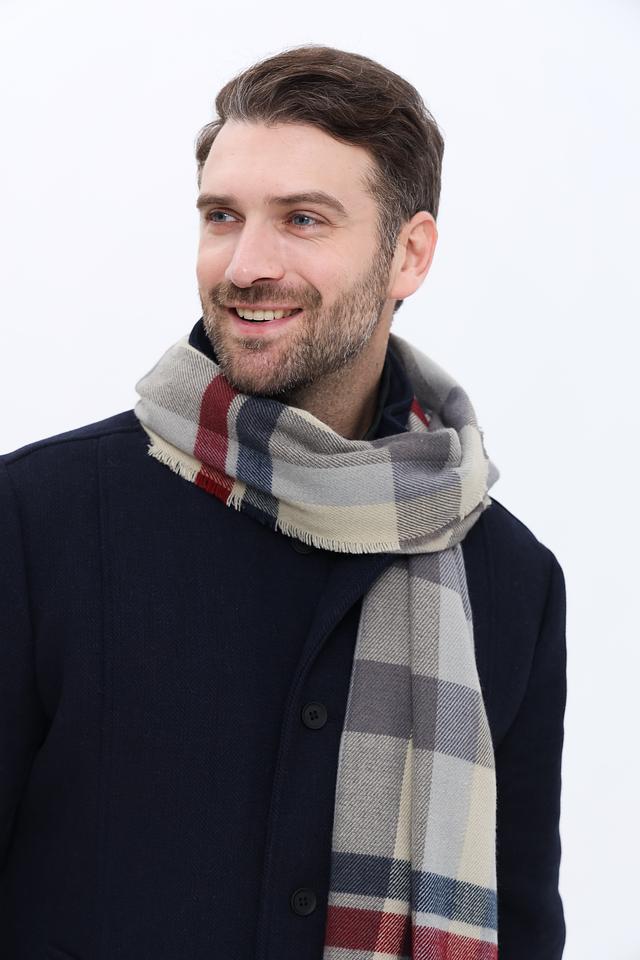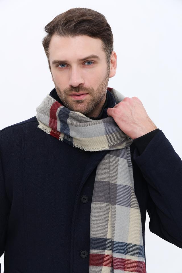 Представляем вашему вниманию стильный мужской шарф от бренда Lerros. Шарф выполнен в классической клетке, сочетающей в себе серые, бежевые, синие и бордовые оттенки.