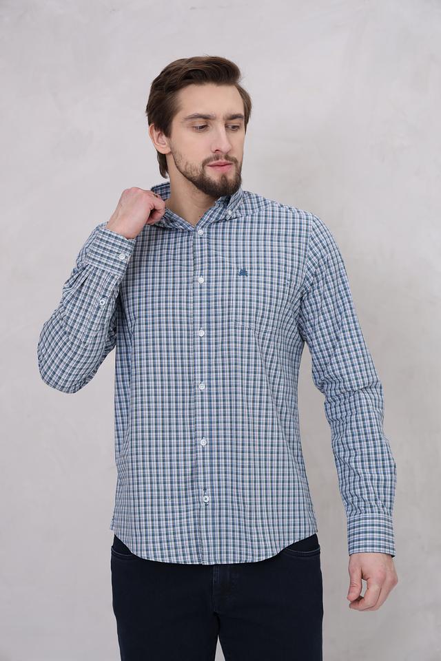 Голубая рубашка Lerros с длинным рукавом в классическую клетку – отличный выбор для создания повседневного образа. Изготовлена из 100% хлопка, обеспечивающего комфорт и воздухопроницаемость. Состав: хлопок 100%