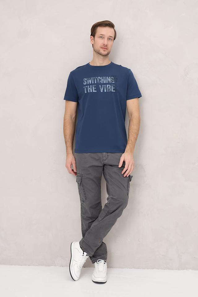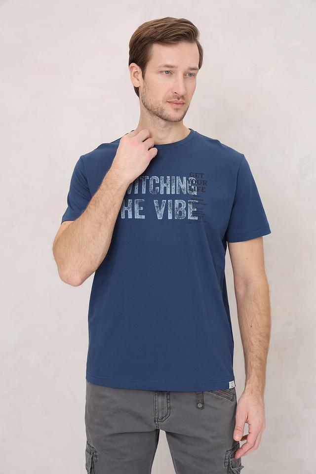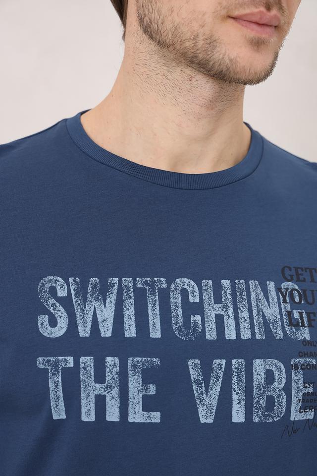 Мужская футболка Lerros синего цвета с оригинальным принтом "Switching the vibe". Изготовлена из 100% хлопка, обеспечивающего комфорт и воздухопроницаемость. Стильный и удобный вариант для повседневной носки. Состав: хлопок 100%