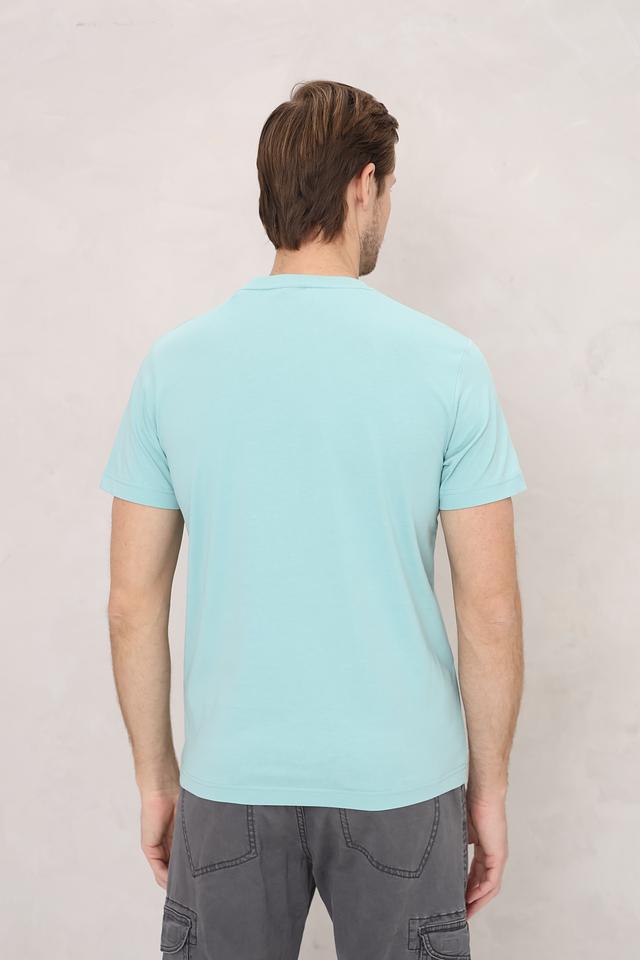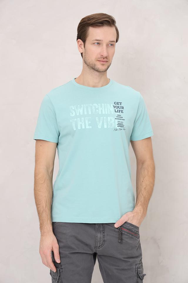 Мятная футболка Lerros из 100% хлопка с оригинальным принтом. Классический крой и мягкий материал обеспечивают комфорт в повседневной носке. Стильный и универсальный вариант для создания модных образов. Состав: хлопок 100%