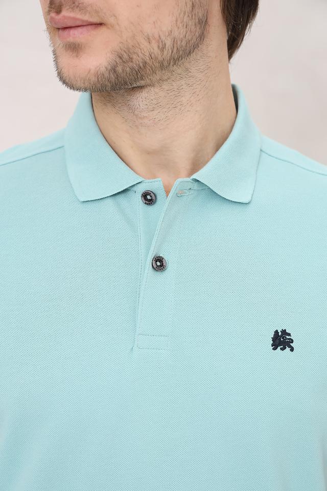 Поло выполнено в нежном мятном цвете, который легко сочетается с другими элементами гардероба. На груди расположена небольшая вышивка с логотипом бренда, добавляющая изделию индивидуальности.
