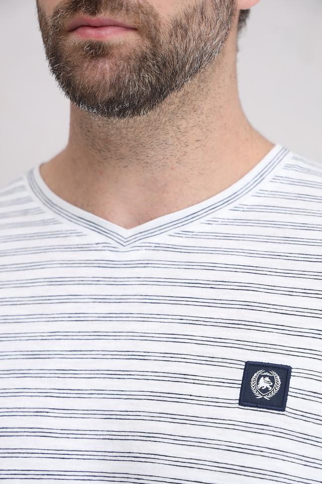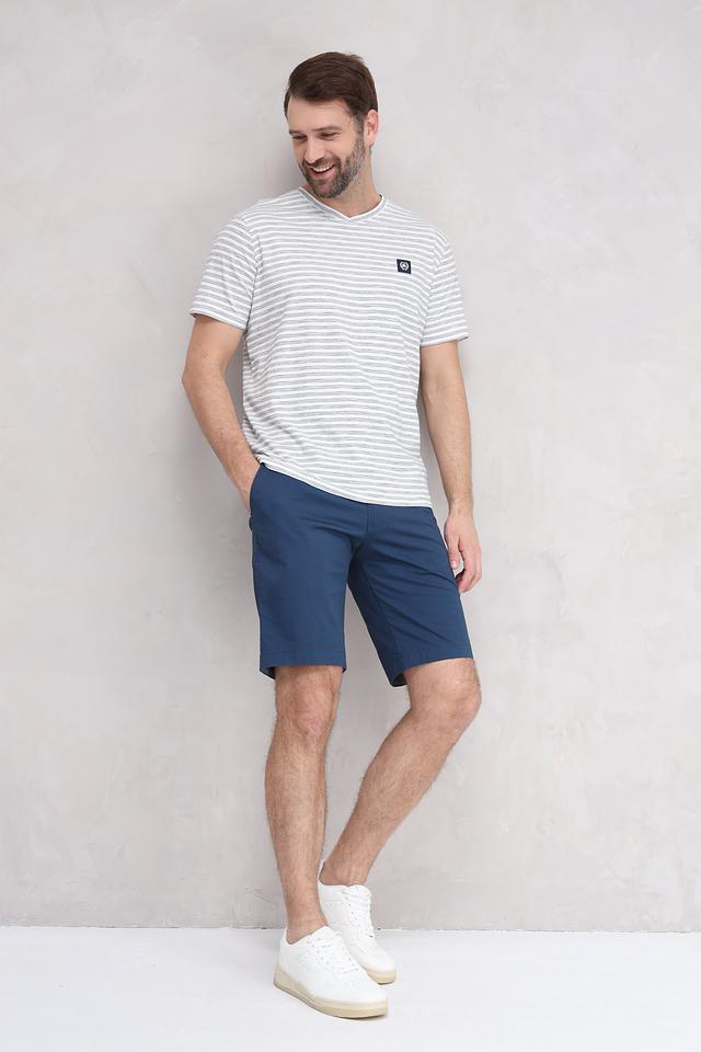 Мужская футболка Lerros голубого цвета с классическим V-образным вырезом и полосатым рисунком. Изготовлена из 100% хлопка, обеспечивающего комфорт и воздухопроницаемость. Отличный выбор для повседневного образа. Состав: хлопок 100%