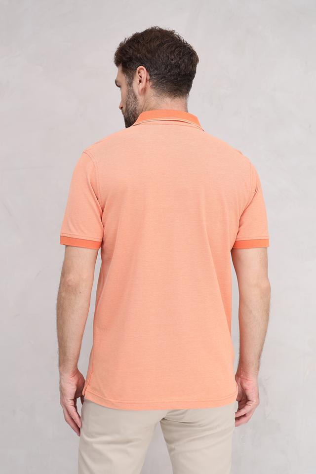 Поло выполнено в ярком оранжевом цвете, который отлично подойдет для создания стильных и непринужденных образов. Окантовка воротника и рукавов выполнена в более темном оттенке оранжевого, что создает интересный контраст.