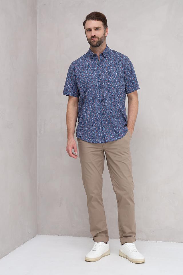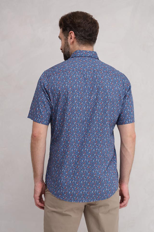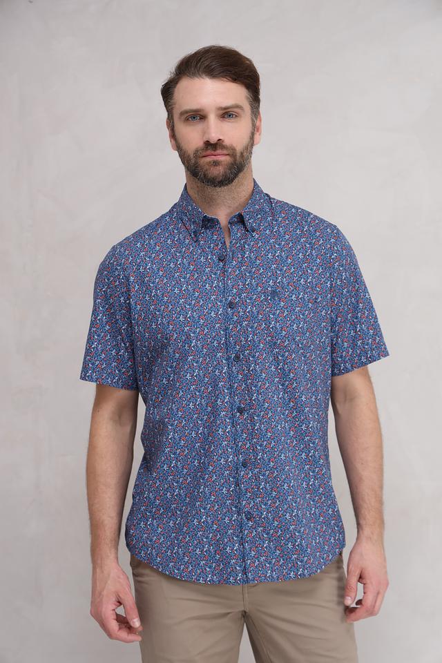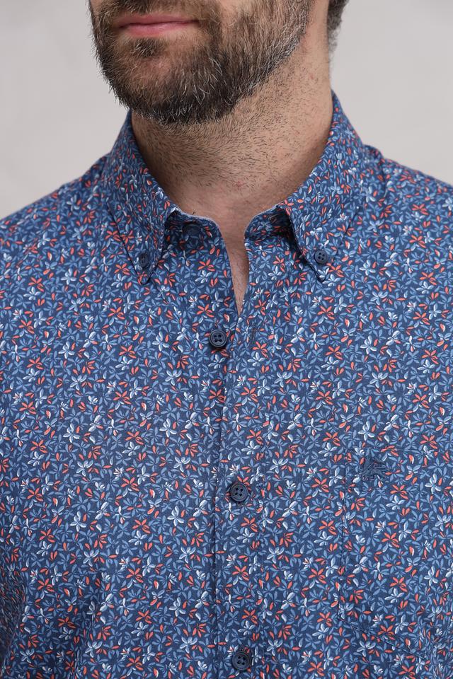 Представляем стильную мужскую рубашку от бренда Lerros. Эта рубашка с коротким рукавом выполнена в насыщенном синем цвете и украшена оригинальным цветочным принтом, сочетающим в себе оттенки красного и оранжевого.