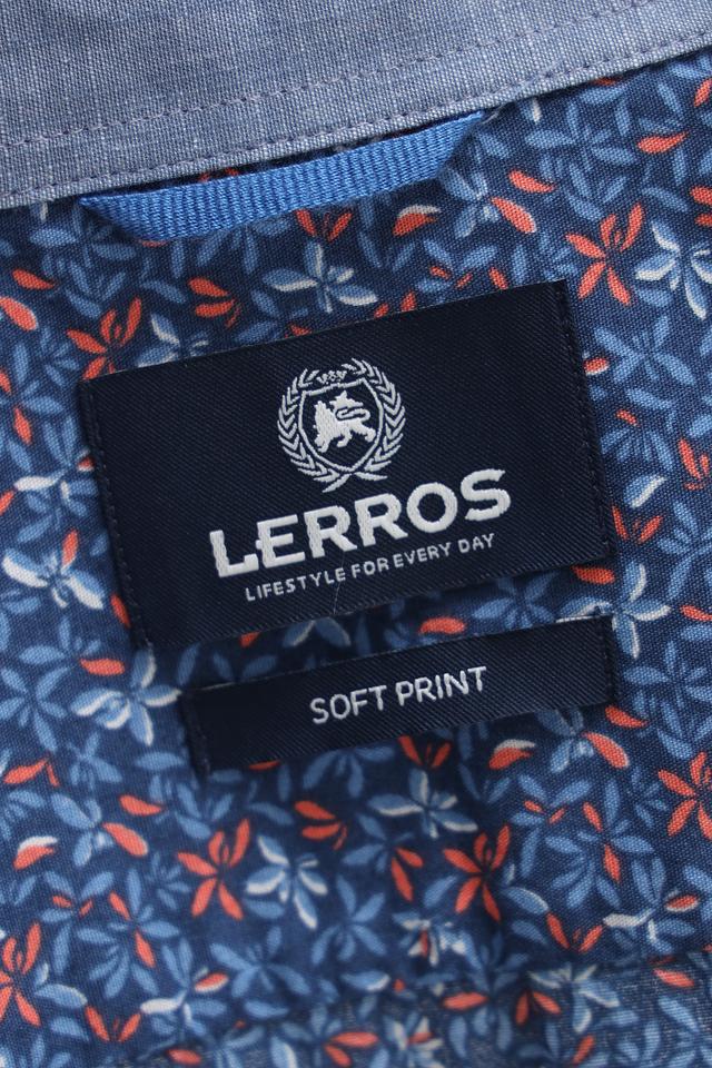 Мужская рубашка Lerros синего цвета с коротким рукавом, украшенная ярким цветочным принтом. Изготовлена из 100% хлопка, обеспечивающего комфорт и воздухопроницаемость. Идеальный выбор для создания стильного и непринужденного образа. Состав: хлопок 100%