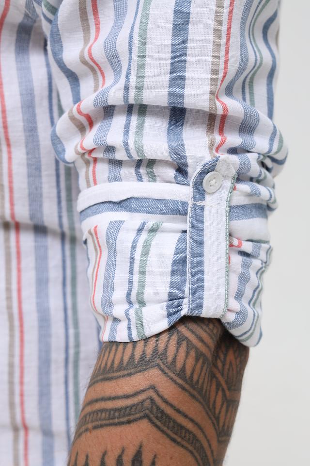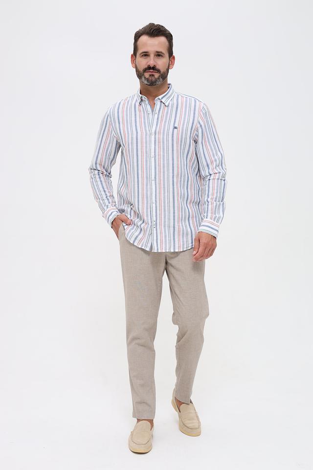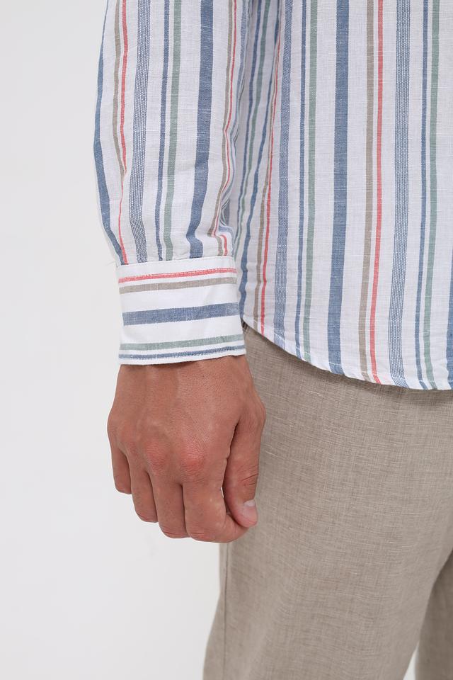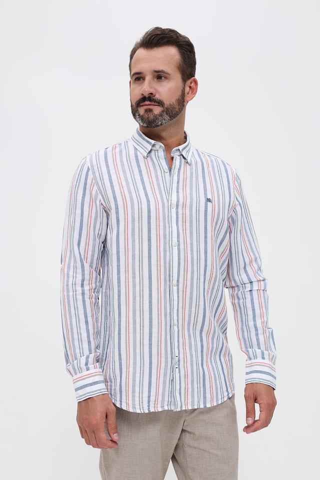 Мужская рубашка Lerros с длинным рукавом выполнена в светлой полосатой расцветке. Модель из льна и хлопка отличается лёгкостью и комфортом в носке, идеально подходит для создания повседневных образов. Состав: лен 55%, хлопок 45%