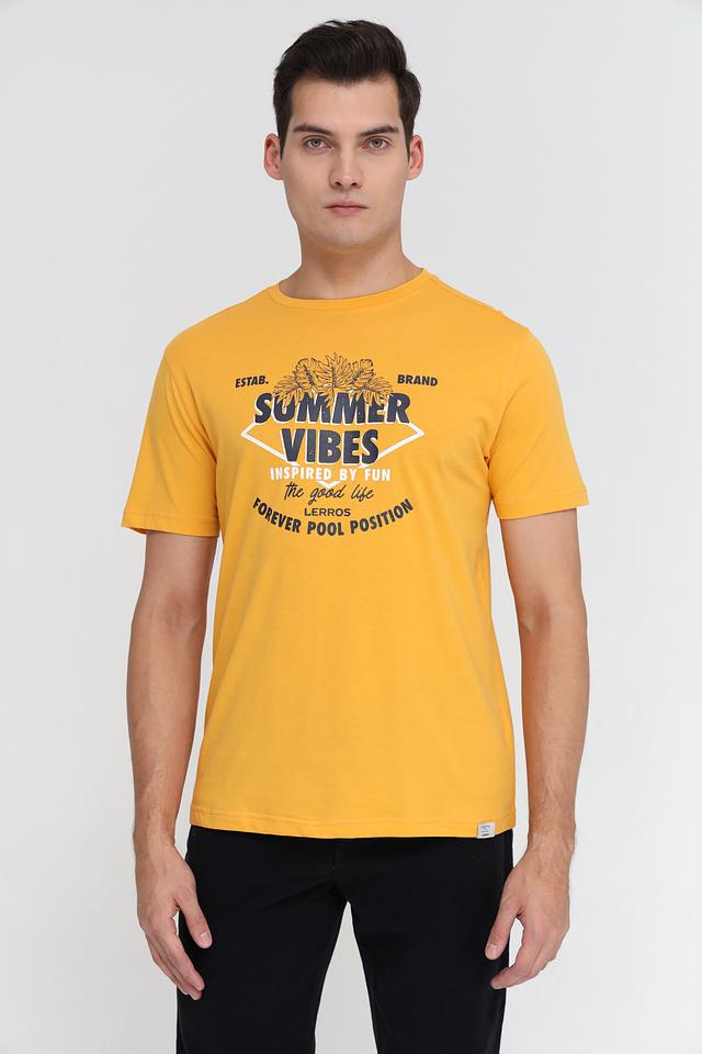 Жёлтая футболка Lerros с ярким принтом "Summer Vibes" станет отличным дополнением к вашему летнему гардеробу. Изготовлена из 100% хлопка, обеспечивая комфорт и воздухопроницаемость. Состав: хлопок 100%