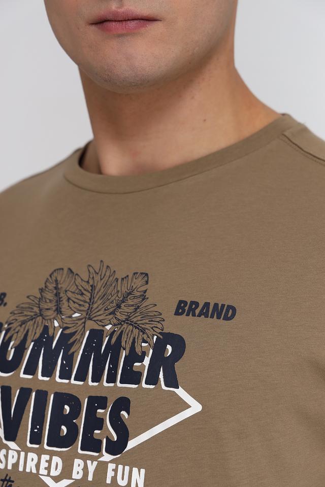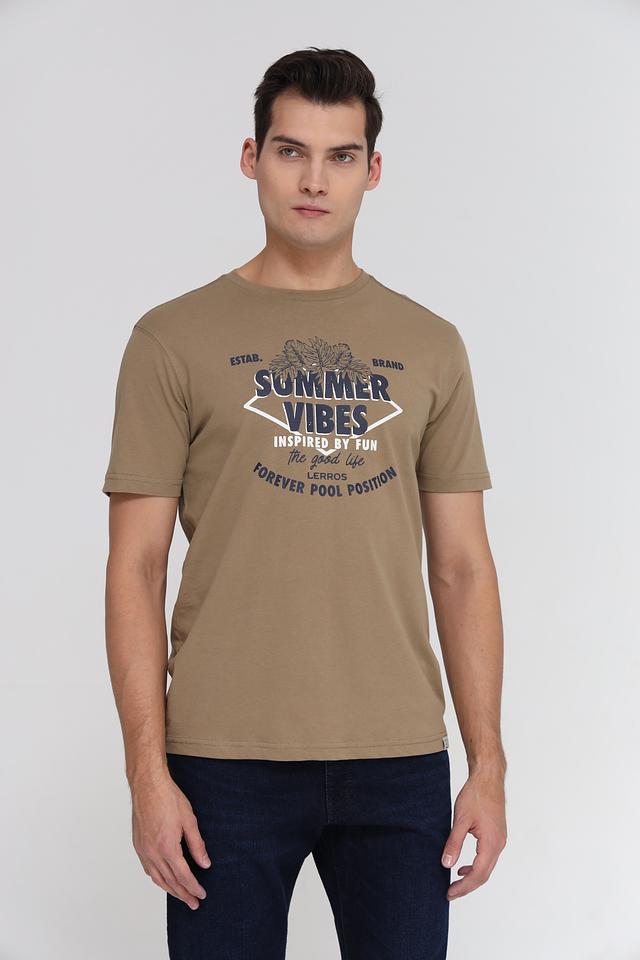 Мужская футболка Lerros оливкового цвета с ярким принтом "Summer Vibes". Изготовлена из 100% хлопка, обеспечивающего комфорт и воздухопроницаемость. Отличный выбор для повседневного образа. Состав: хлопок 100%