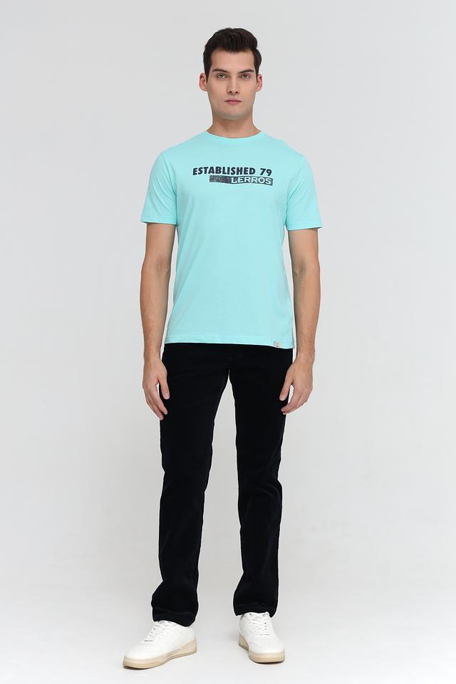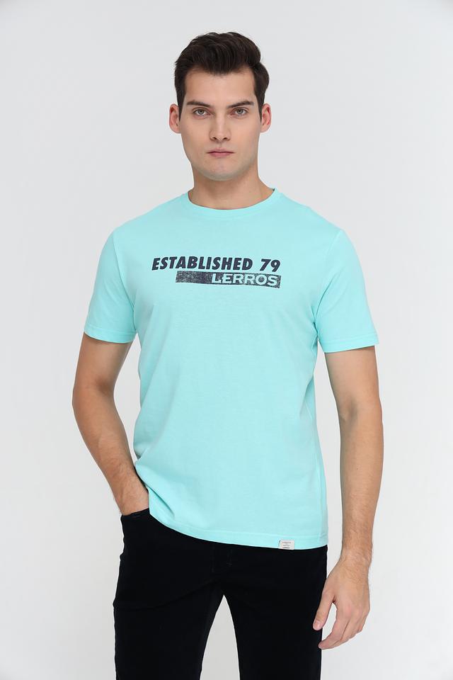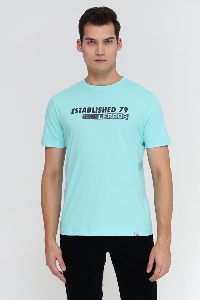 Мужская футболка Lerros бирюзового цвета с принтом "Established 79". Изготовлена из 100% хлопка, обеспечивающего комфорт и воздухопроницаемость. Стильный дизайн и качественный материал делают эту футболку отличным выбором для повседневной носки. Состав: хлопок 100%