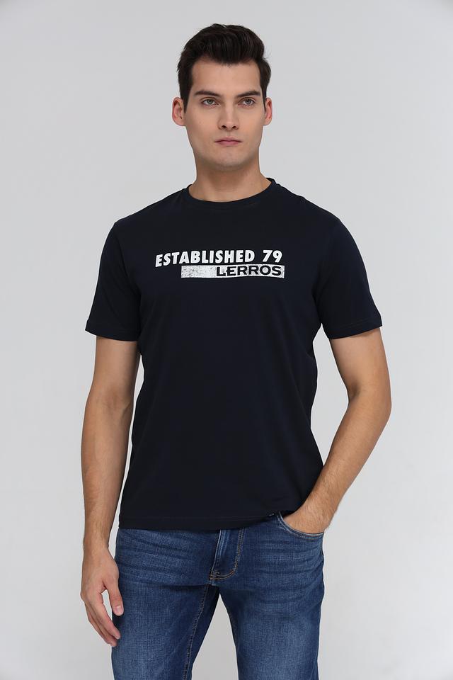 Мужская футболка Lerros чёрного цвета с принтом "Established 79". Изготовлена из 100% хлопка, обеспечивающего комфорт и воздухопроницаемость. Отличный выбор для повседневного образа. Состав: хлопок 100%