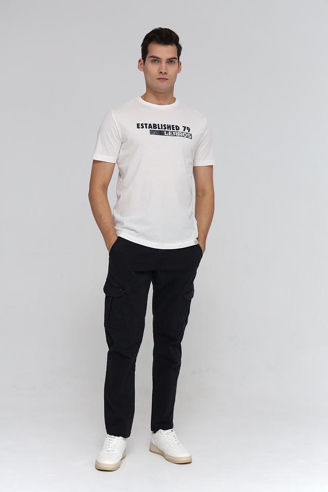 Мужская футболка Lerros – это стильная и удобная вещь для повседневной носки. Футболка выполнена в белом цвете и украшена контрастным принтом "Established 79" с логотипом бренда.