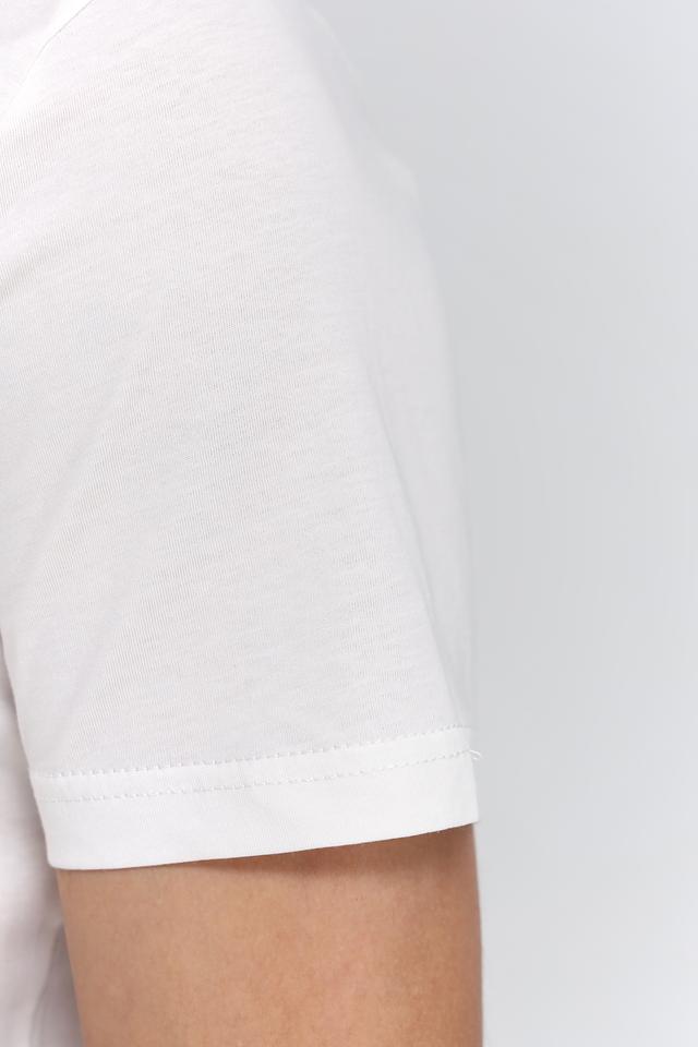 Модель имеет классический крой, круглый вырез горловины и короткие рукава. Изготовлена из высококачественного 100% хлопка, что обеспечивает приятные тактильные ощущения и комфорт при ношении.