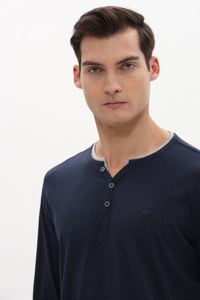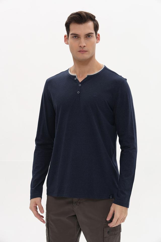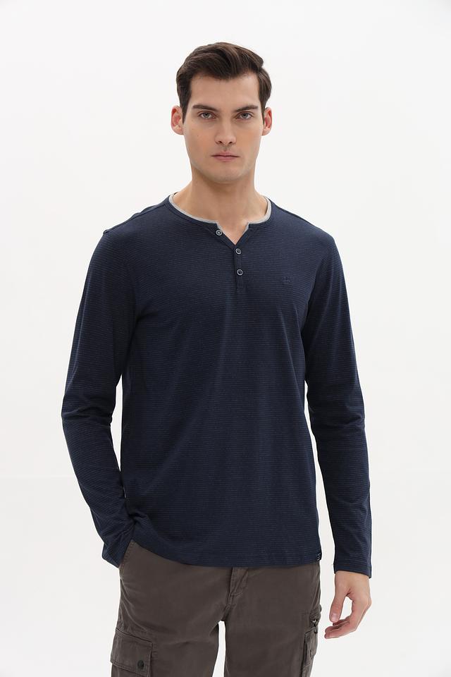 Мужской лонгслив Lerros темно-синего цвета с планкой на пуговицах и текстурной фактурой. Изготовлен из мягкого хлопка с добавлением полиэстера для комфорта и долговечности. Состав: хлопок 94%, полиэстер 6%