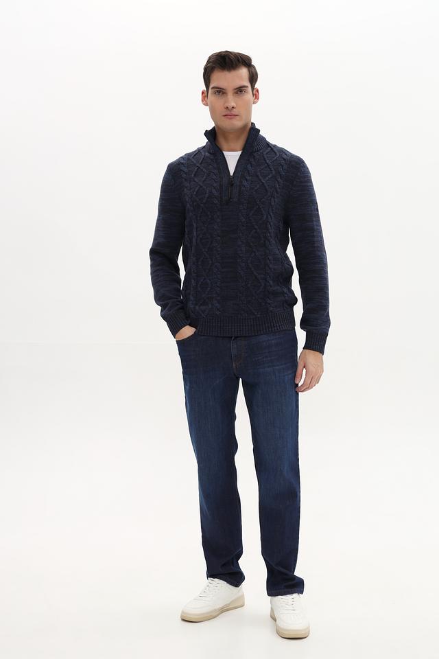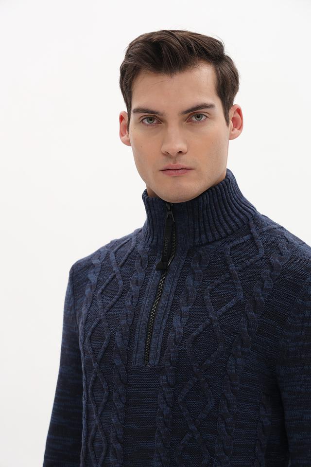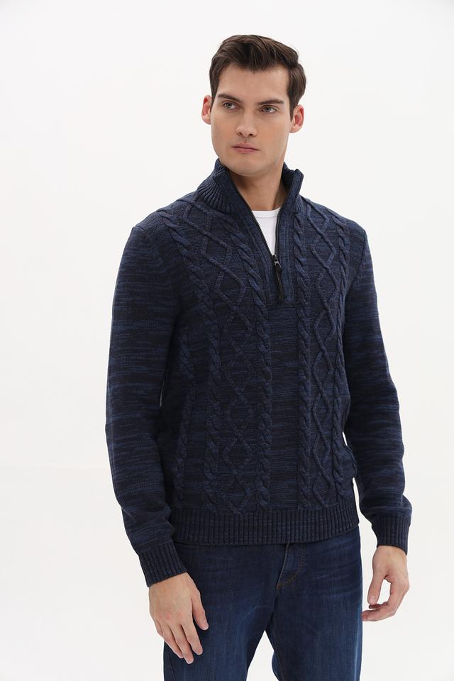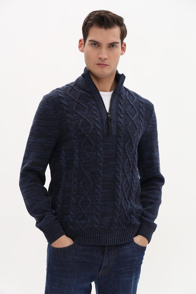 Стильный мужской джемпер Lerros синего цвета с выразительным узором из кос. Модель выполнена из мягкого и приятного к телу сочетания хлопка и акрила, имеет удобную застежку-молнию на горловине. Состав: хлопок 60%, акрил 40%