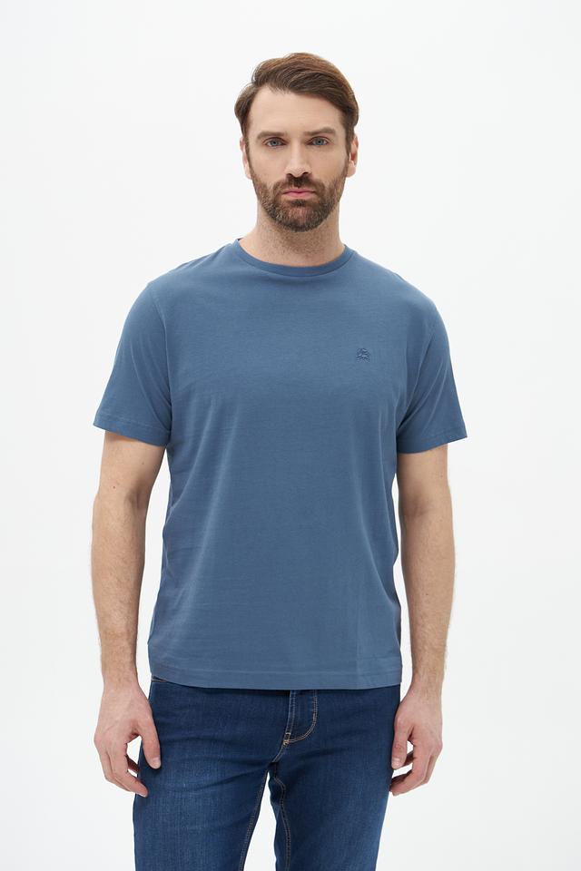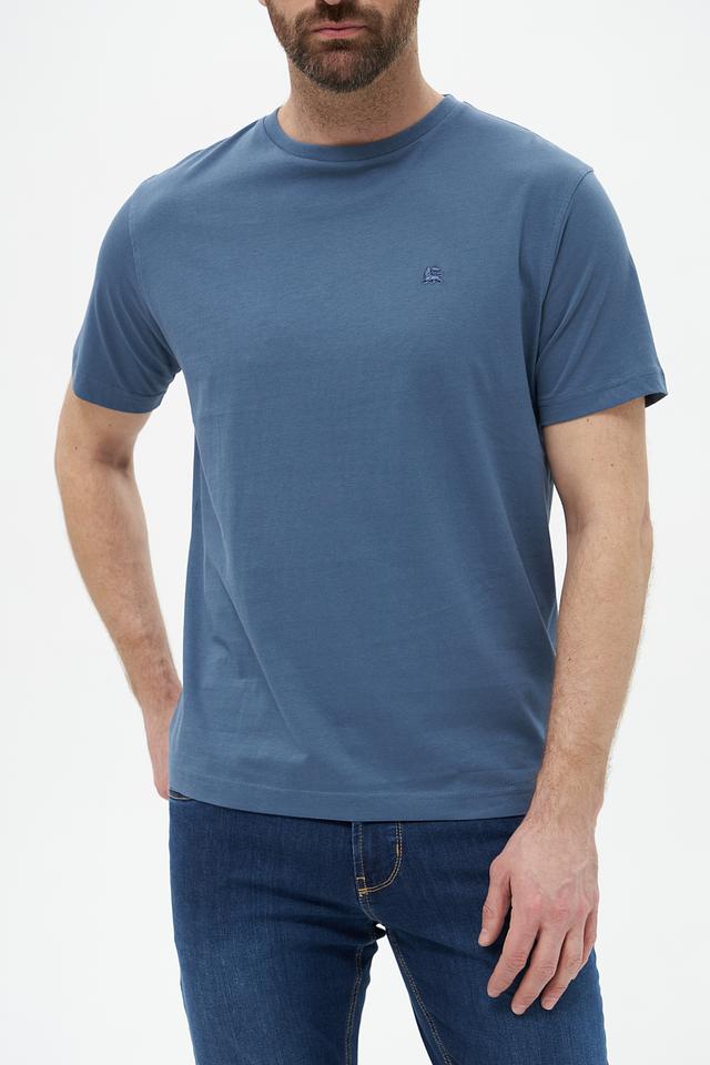 Отличительной особенностью данной модели является её лаконичный дизайн. На груди располагается небольшой вышитый логотип бренда Lerros, который добавляет футболке элегантности. Цвет футболки – приглушенный голубой, который легко сочетается с различными элементами гардероба.