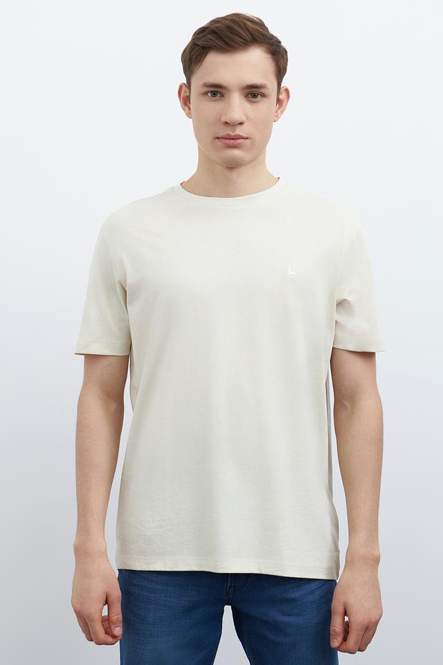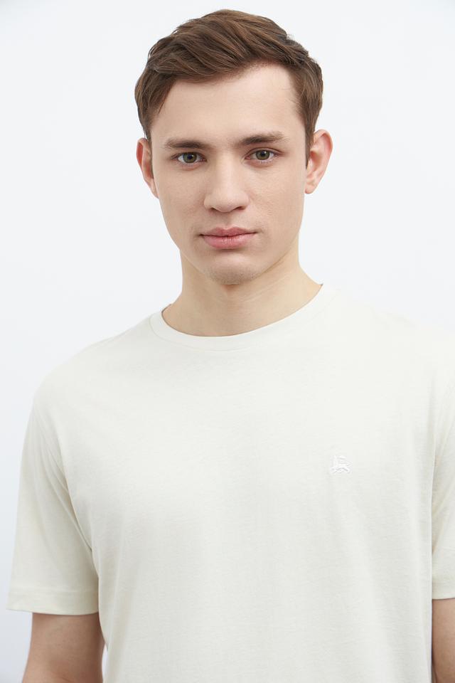 Отличительной особенностью данной модели является её лаконичный дизайн. На груди расположена небольшая вышивка с логотипом бренда, что придает футболке стильный и узнаваемый вид. Цвет футболки – нежный бежевый, который легко сочетается с различными элементами гардероба.