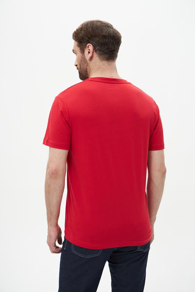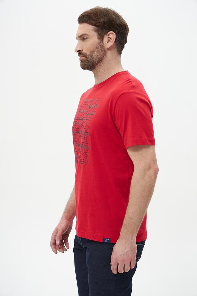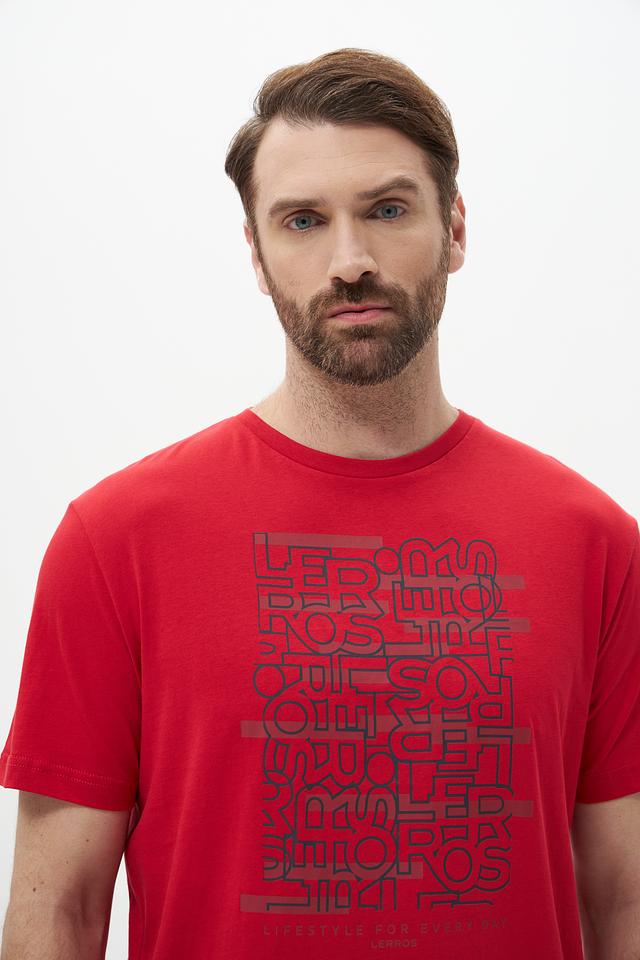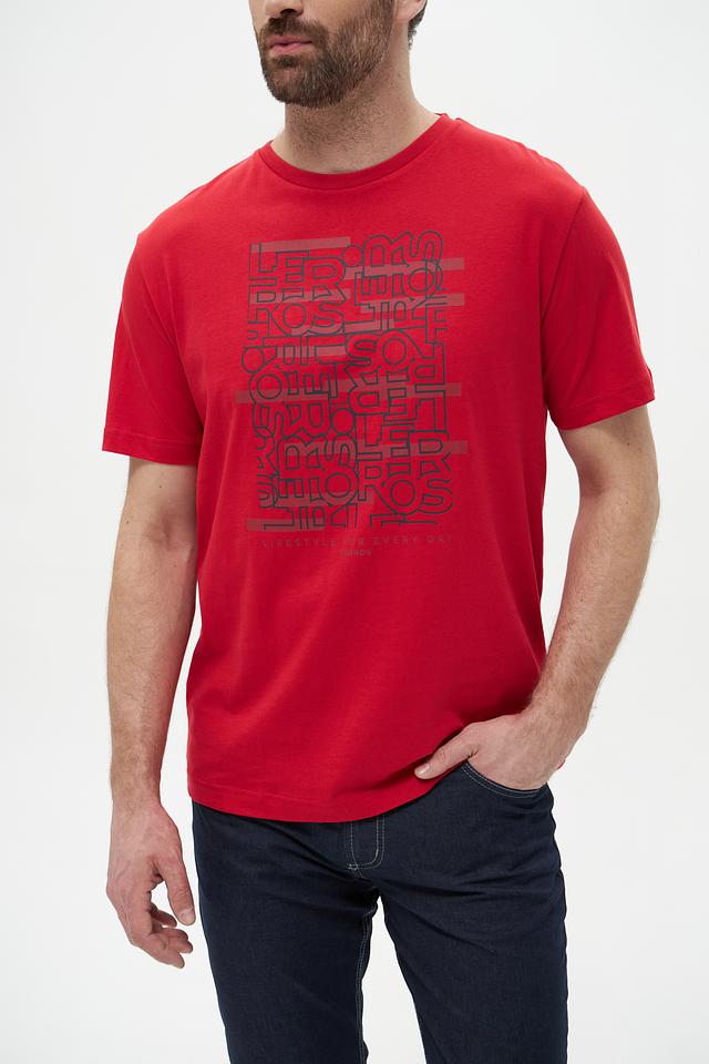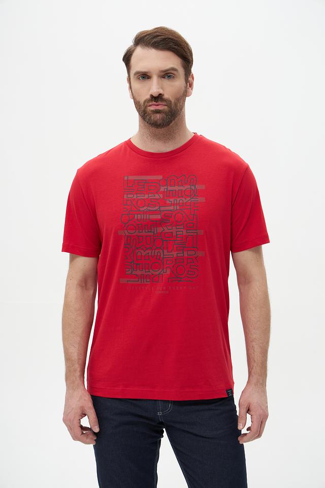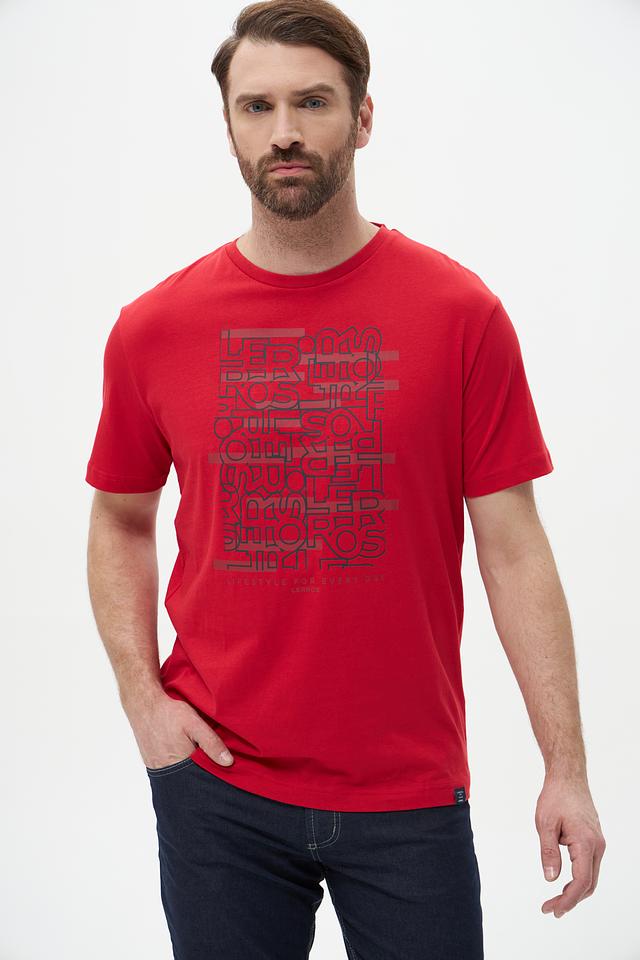 Мужская футболка Lerros красного цвета с оригинальным принтом логотипа бренда. Изготовлена из 100% хлопка, обеспечивающего комфорт и воздухопроницаемость. Отличный выбор для повседневного образа. Состав: хлопок 100%