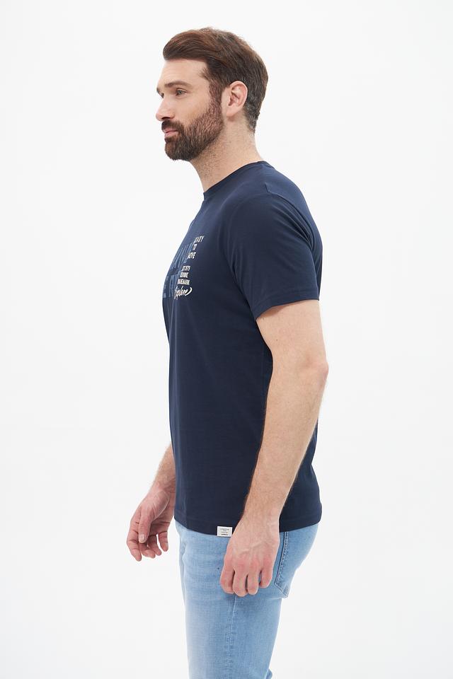 Мужская футболка Lerros темно-синего цвета с оригинальным принтом на передней части. Изготовлена из 100% хлопка, обеспечивающего комфорт и воздухопроницаемость. Стильный и практичный выбор для повседневной носки. Состав: хлопок 100%