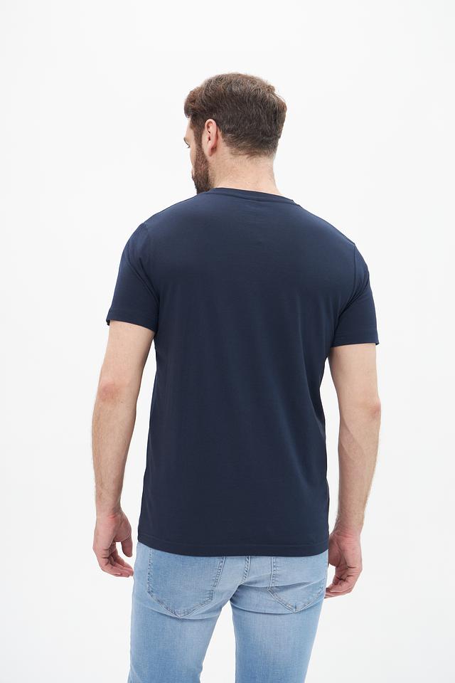 Представляем мужскую футболку от бренда Lerros. Эта футболка выполнена в классическом темно-синем цвете, который легко сочетается с различными элементами гардероба.