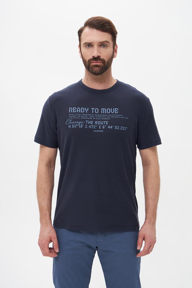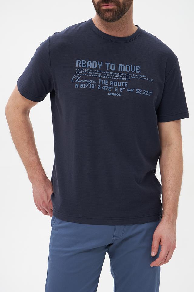 Мужская футболка Lerros синего цвета с оригинальным принтом и коротким рукавом. Изготовлена из 100% хлопка, обеспечивающего комфорт и воздухопроницаемость. Стильный и практичный выбор для повседневной носки. Состав: хлопок 100%