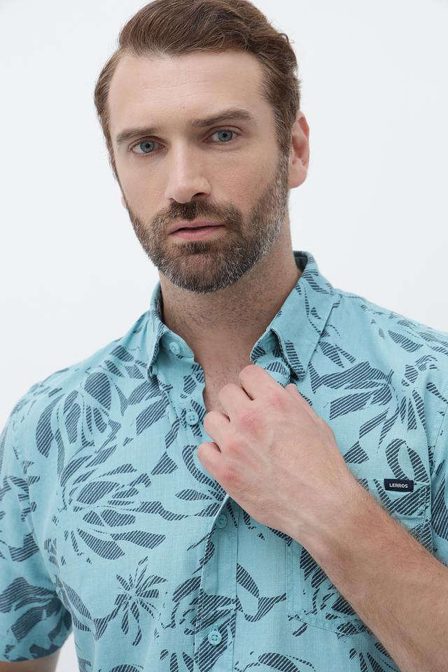 Эта мужская рубашка от Lerros станет прекрасным дополнением к вашему гардеробу. Выполнена в приятном бирюзовом цвете и украшена оригинальным цветочным принтом, который придаёт ей свежий и летний вид.