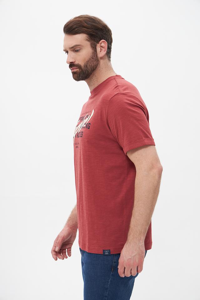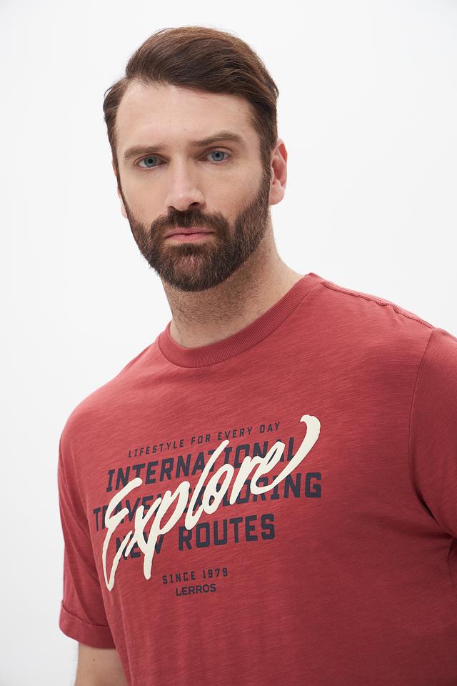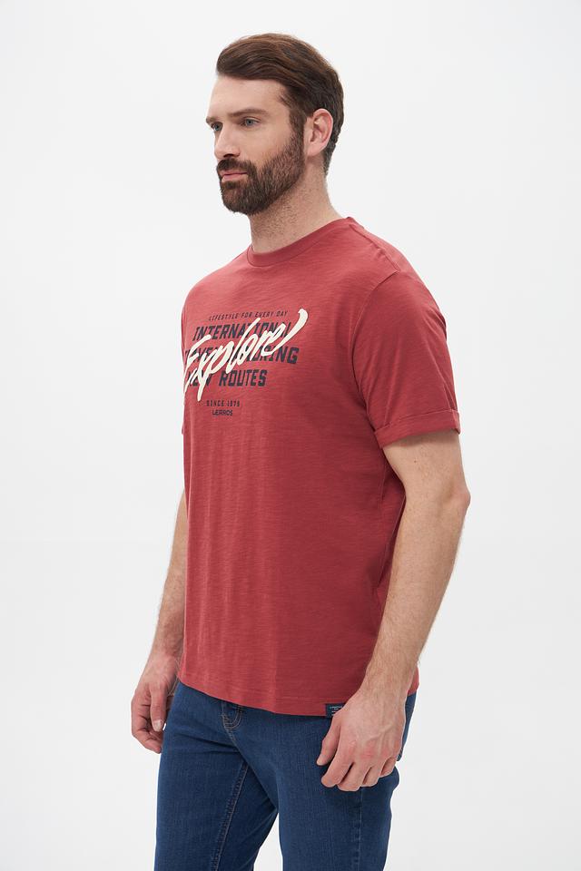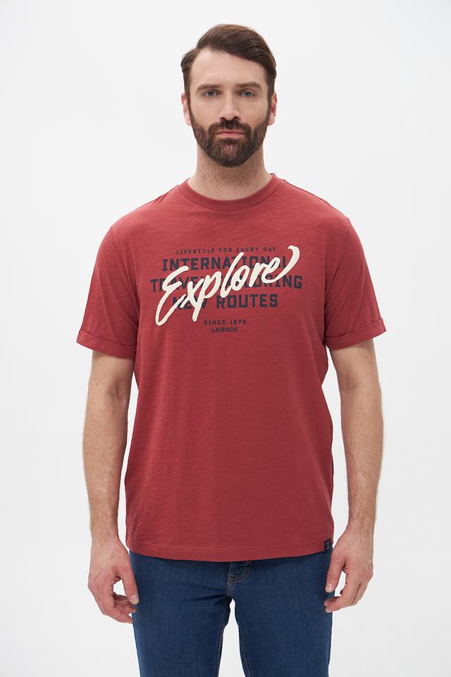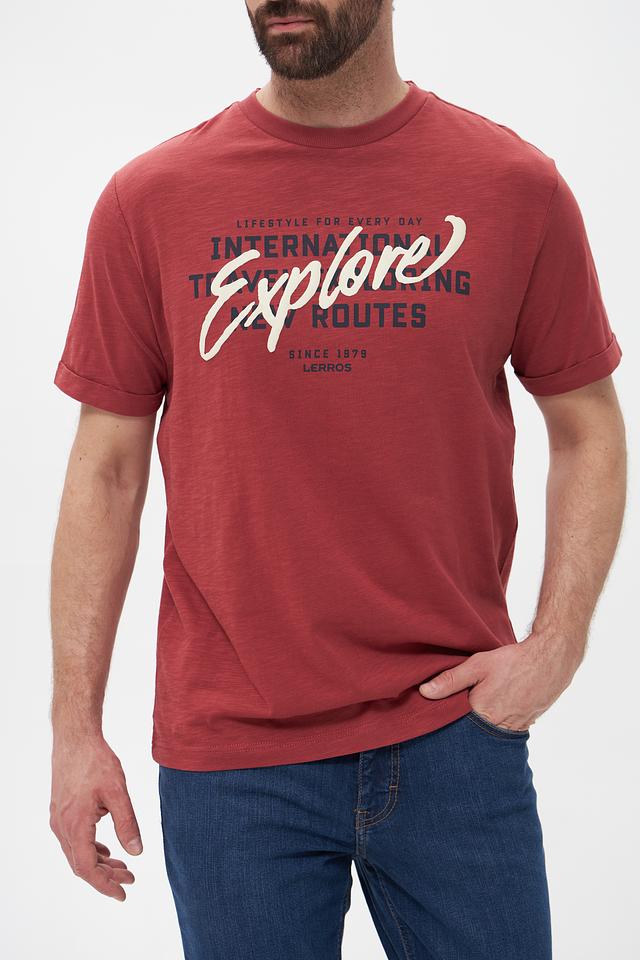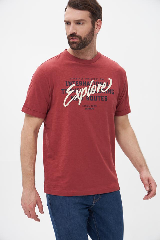 Мужская футболка Lerros терракотового цвета с ярким принтом "Explore". Изготовлена из 100% хлопка, обеспечивающего комфорт и воздухопроницаемость. Стильный дизайн и удобный крой делают эту футболку отличным выбором для повседневной носки. Состав: хлопок 100%