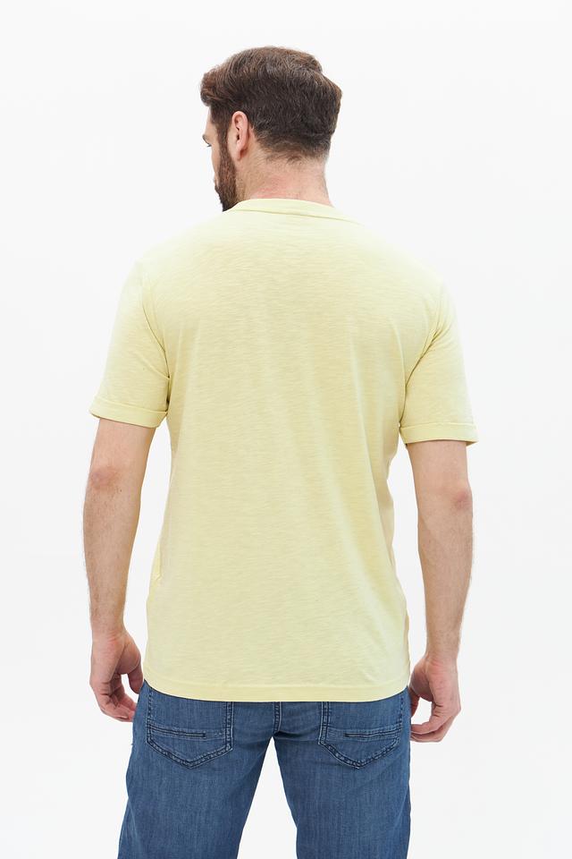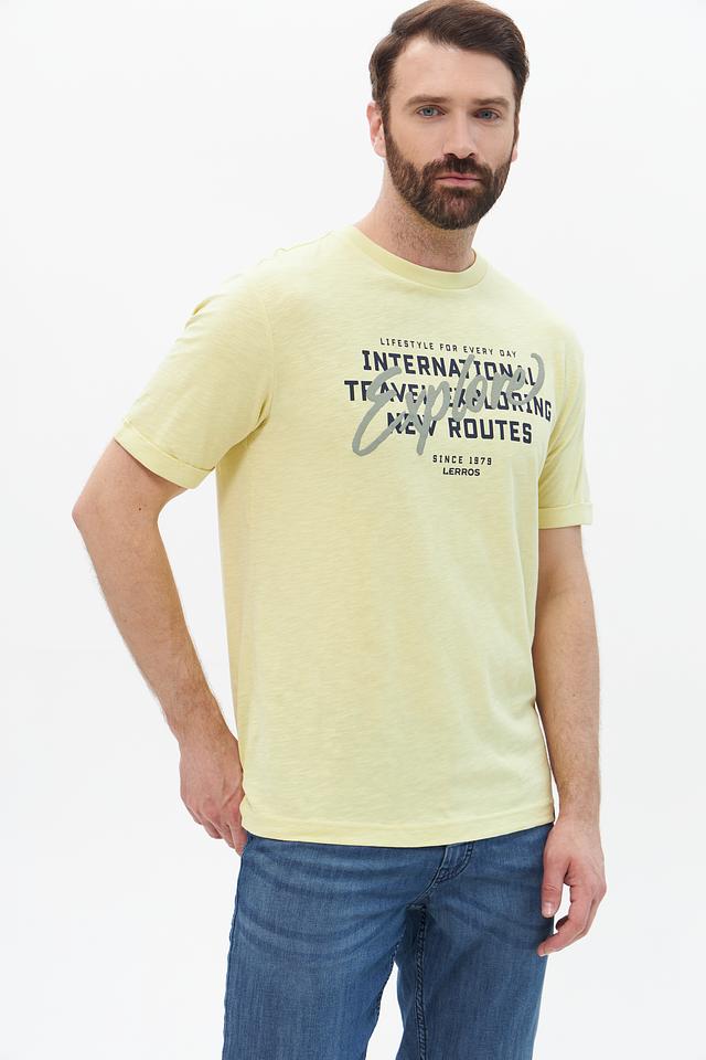 Стильная мужская футболка Lerros светло-жёлтого цвета с оригинальным принтом. Изготовлена из 100% хлопка, обеспечивающего комфорт и воздухопроницаемость. Состав: хлопок 100%
