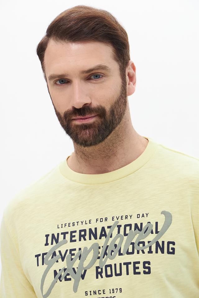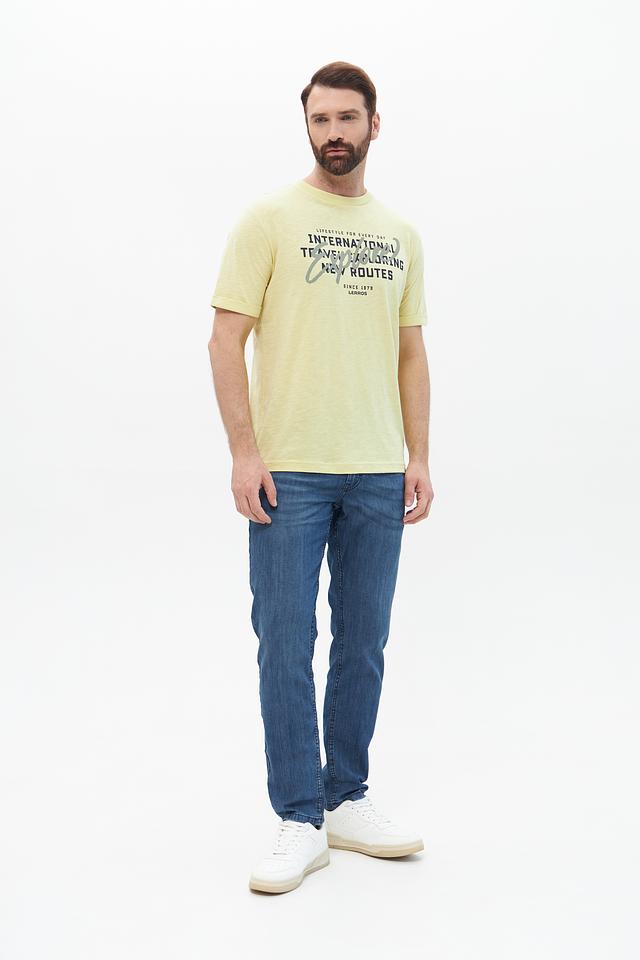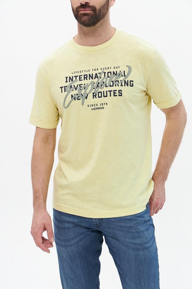 Мужская футболка от Lerros – это отличный выбор для создания повседневного образа. Футболка выполнена в светло-жёлтом цвете и украшена ярким принтом с надписями и графическими элементами.