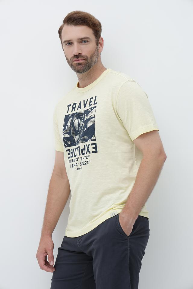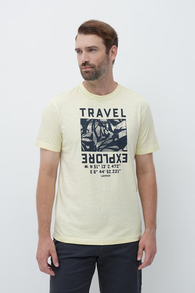 Мужская футболка Lerros – это сочетание комфорта и стиля. Футболка выполнена в светло-жёлтом цвете и украшена оригинальным принтом "Travel", который добавляет образу динамичности и индивидуальности.