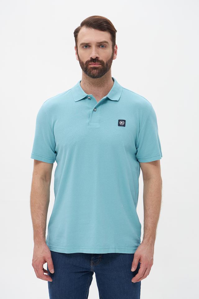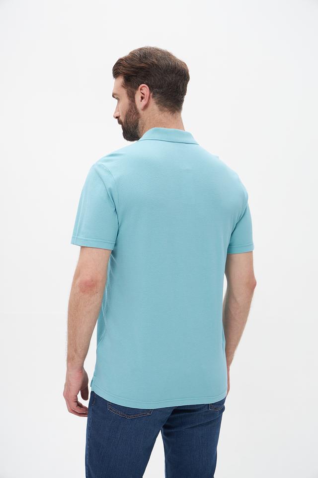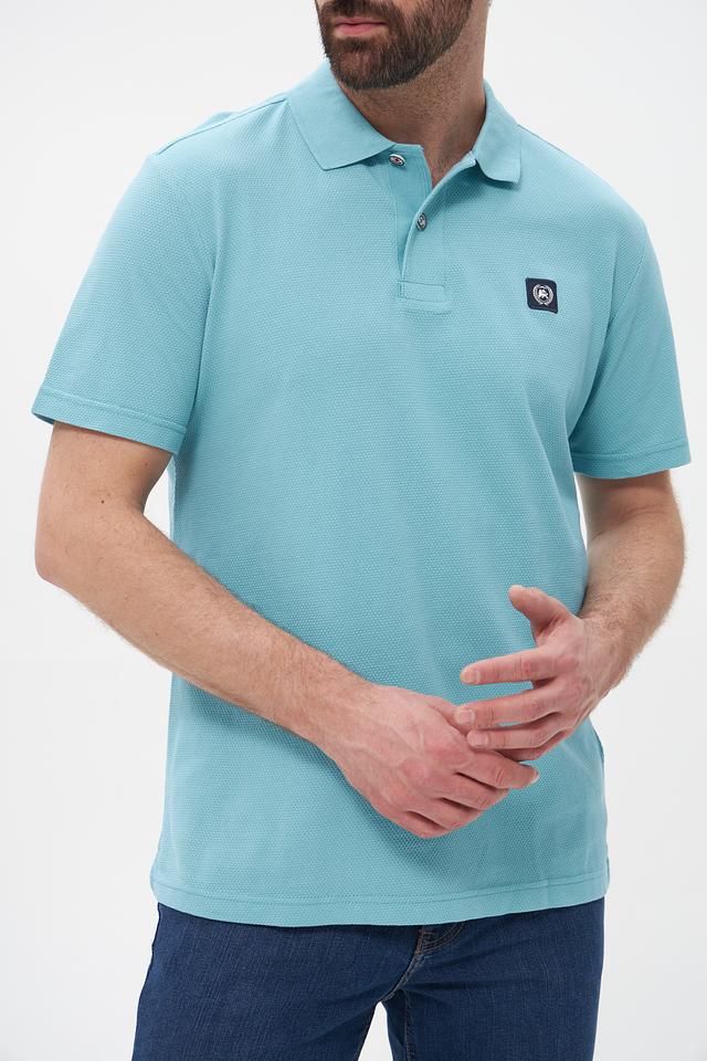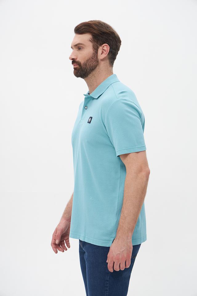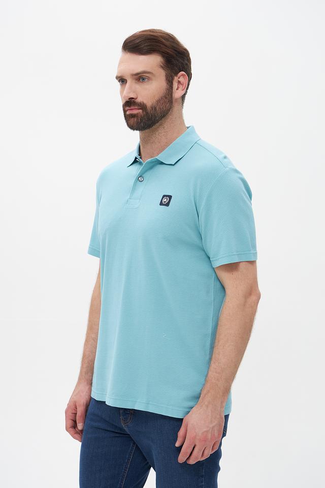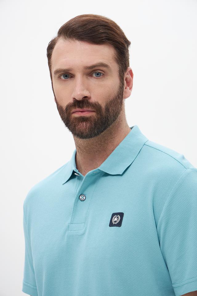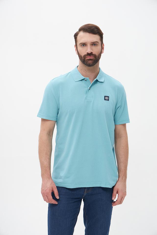 Поло имеет классический крой, который хорошо сидит по фигуре, не сковывая движений. Бирюзовый цвет придает образу свежесть и легкость. На груди расположена небольшая эмблема бренда, добавляющая стильный акцент.