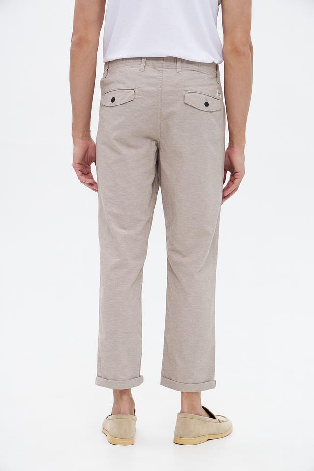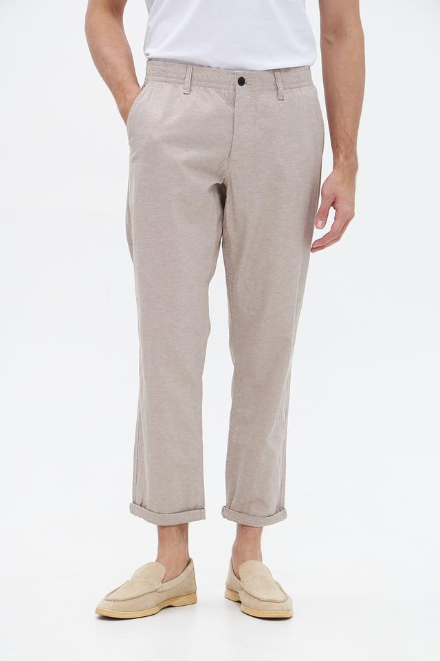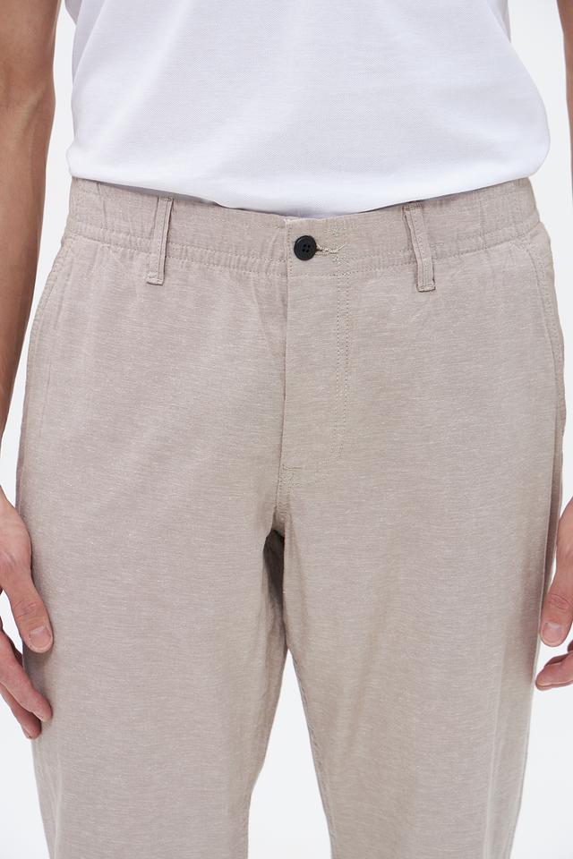 Брюки имеют прямой крой, который обеспечивает свободу движений и комфорт в течение всего дня. Эластичный пояс с кулиской позволяет регулировать посадку по фигуре. Материал – сочетание хлопка (74%) и льна (26%), что делает брюки дышащими и приятными к телу, особенно в теплую погоду.