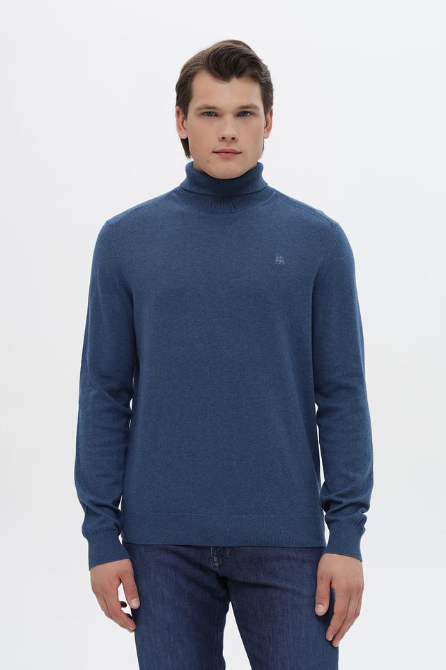 Водолазка имеет классический крой, который хорошо сидит по фигуре и не сковывает движения. Синий цвет придает изделию универсальность, позволяя легко сочетать его с различными элементами гардероба.