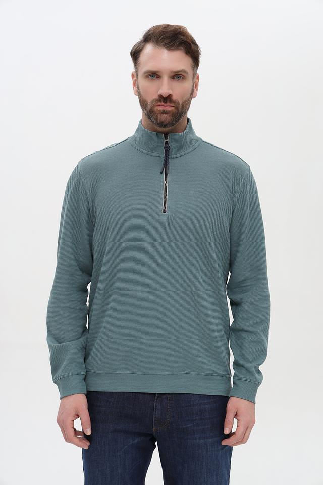 Этот пуловер от Lerros выполнен в спокойном зелёном цвете и станет отличным дополнением к вашему образу. Модель имеет воротник-стойку с короткой молнией, что позволяет регулировать степень защиты от холода.