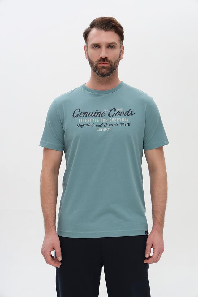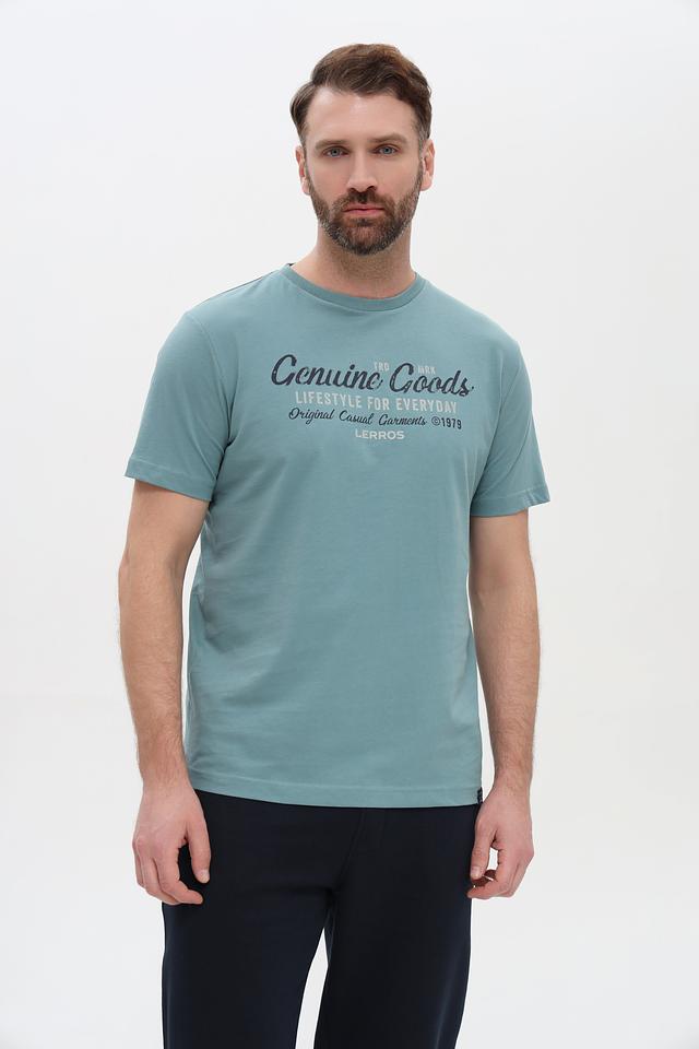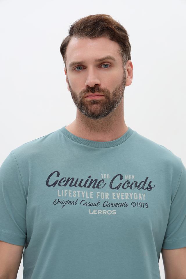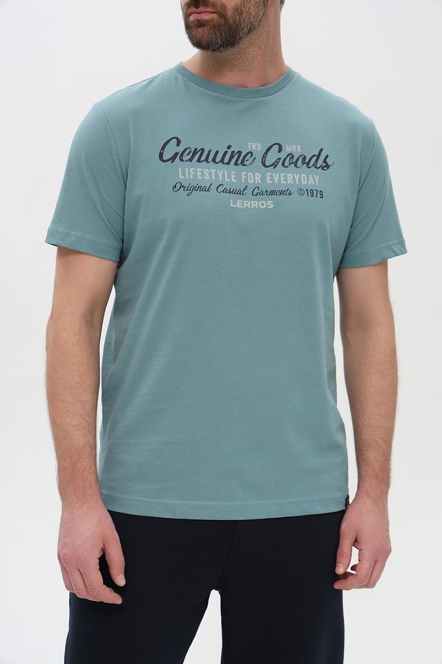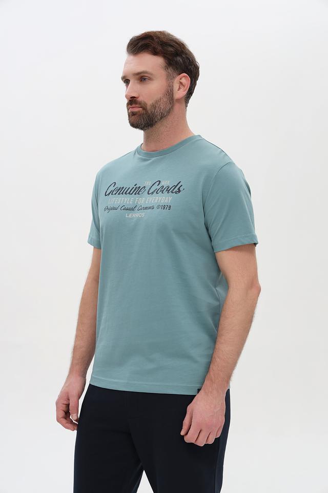 Мужская футболка Lerros мятного цвета с оригинальным принтом. Изготовлена из 100% хлопка, обеспечивающего комфорт в носке. Стильный и практичный выбор для повседневного гардероба. Состав: хлопок 100%