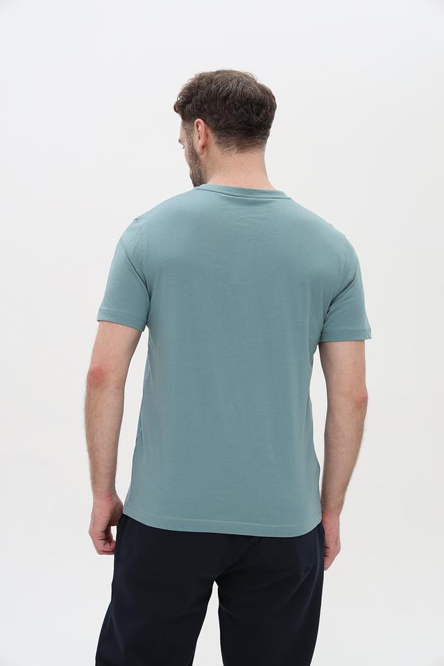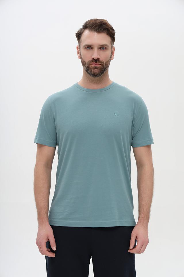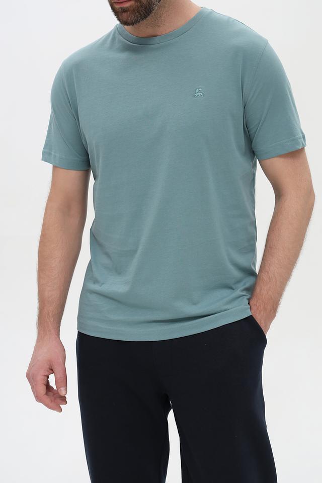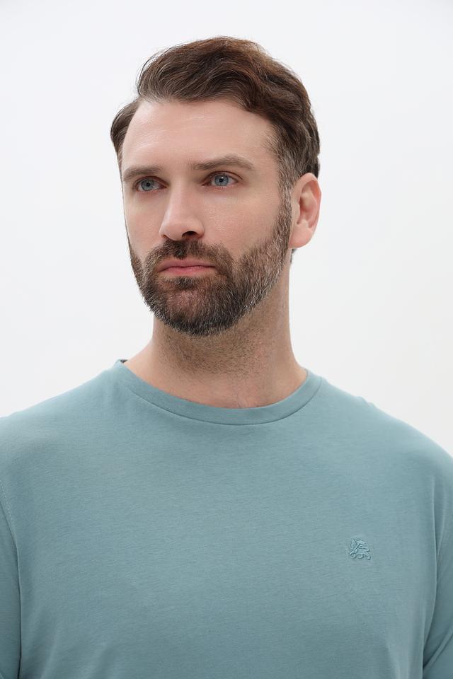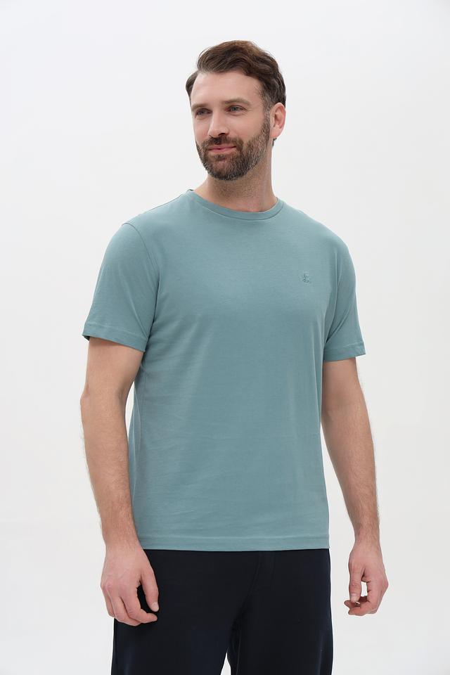 Цвет футболки – приглушенный мятный, который легко сочетается с различными элементами гардероба. Состав: 100% хлопок. Рекомендуется деликатная стирка при низкой температуре.