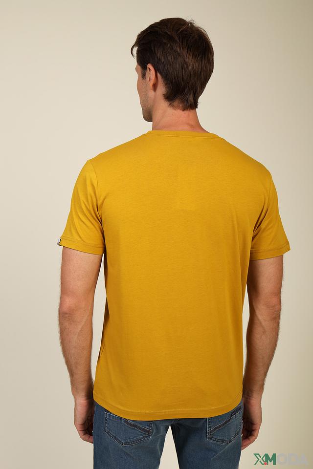 Мужская футболка Lerros горчичного цвета с оригинальным принтом на груди. Изготовлена из 100% хлопка, обеспечивающего комфорт и воздухопроницаемость. Стильный и удобный вариант для повседневной носки. Состав: хлопок 100%