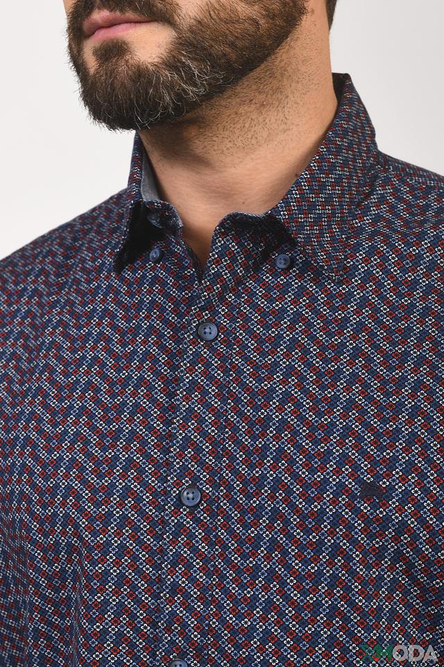 Эта рубашка от Lerros станет отличным дополнением к вашему гардеробу. Выполнена в синем цвете с ярким геометрическим рисунком, который придает ей индивидуальность.