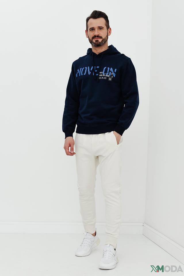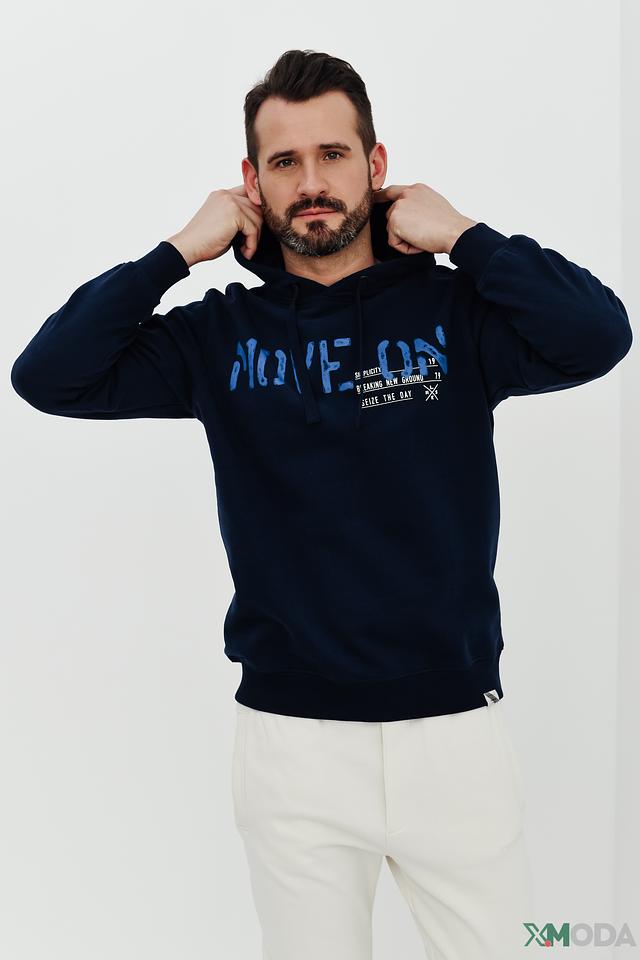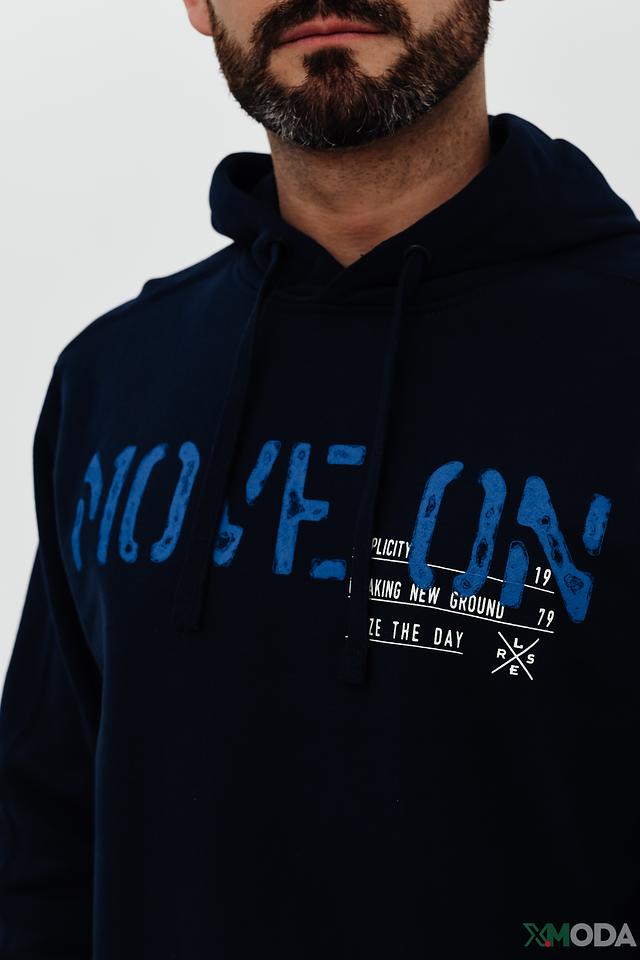 Мужская толстовка Lerros синего цвета с надписью MOVE и капюшоном. Изготовлена из хлопка с добавлением полиэстера для комфорта и долговечности. Стильный и удобный выбор для повседневной носки. Состав: хлопок 82%, полиэстер 18%