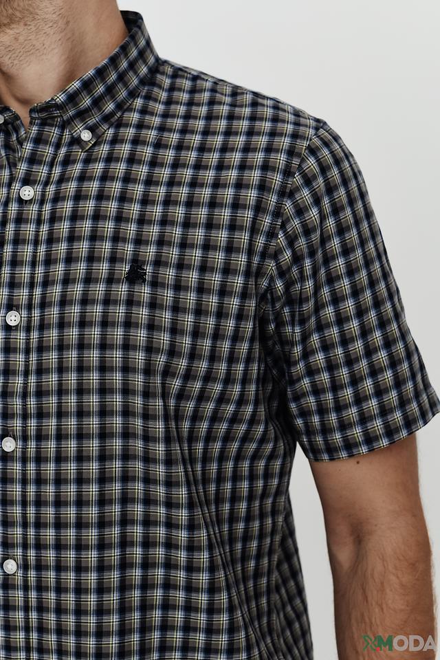 Мужская рубашка Lerros с коротким рукавом выполнена в классической клетке сине-горчичного цвета. Изготовлена из 100% хлопка, обеспечивающего комфорт и воздухопроницаемость. Состав: хлопок 100%