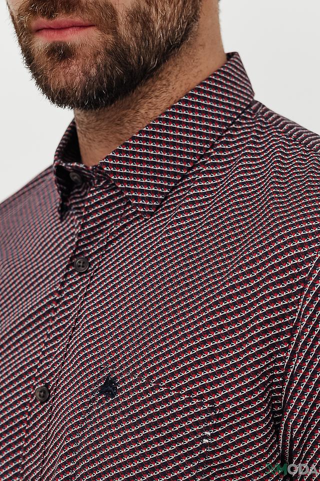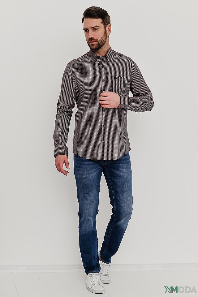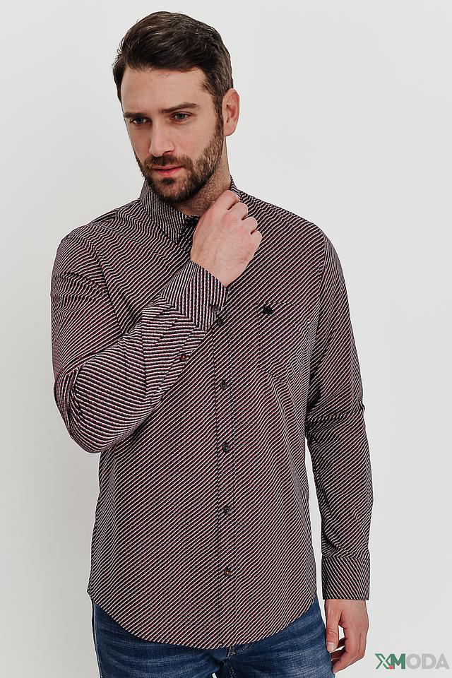 Рубашка имеет классический крой с длинными рукавами и стандартной посадкой. Воротник рубашки выполнен в классическом стиле. Застежка на пуговицах обеспечивает надежную фиксацию.