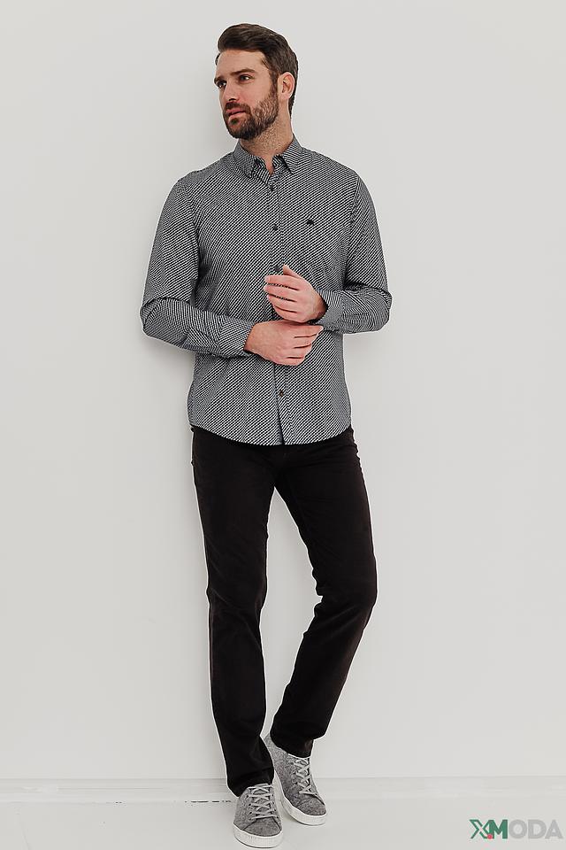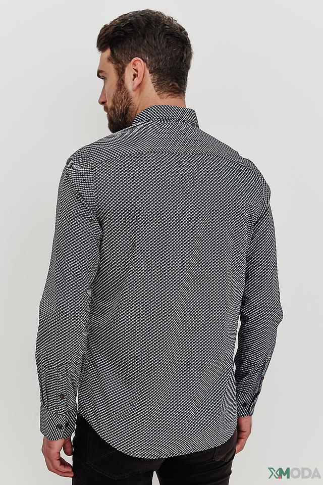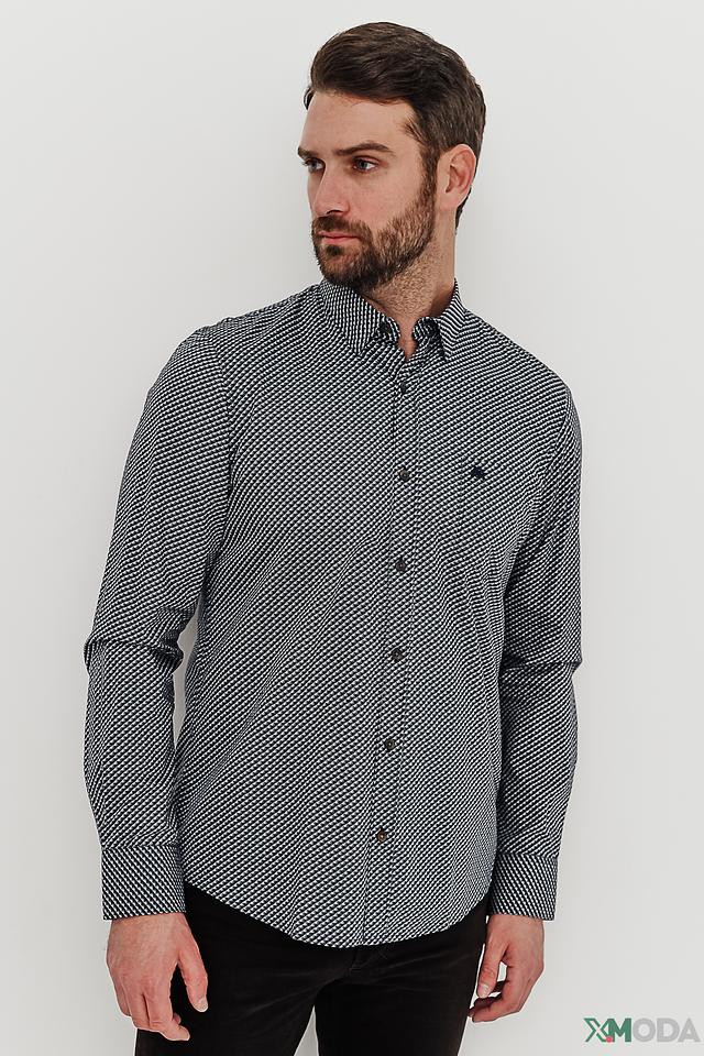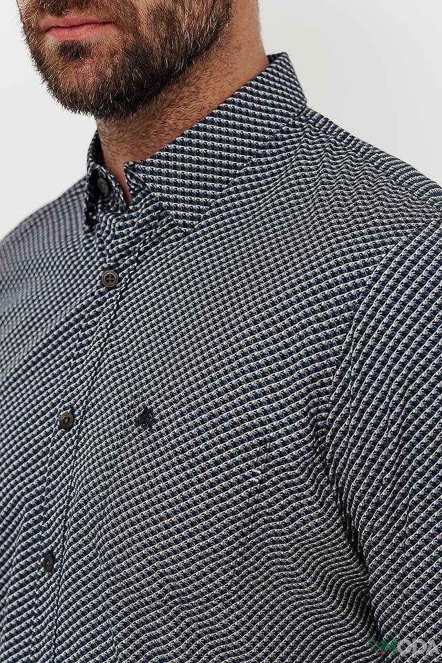 Рубашка имеет классический крой, который подходит для большинства типов фигур. Привлекательный синий цвет в сочетании с мелким геометрическим рисунком делает эту рубашку универсальной и подходящей для различных случаев.