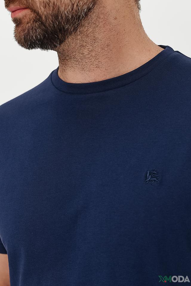 Представляем мужскую футболку от бренда Lerros. Эта футболка выполнена в насыщенном синем цвете и изготовлена из 100% хлопка, что обеспечивает комфорт и воздухопроницаемость в течение всего дня.