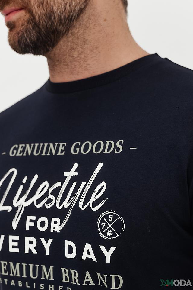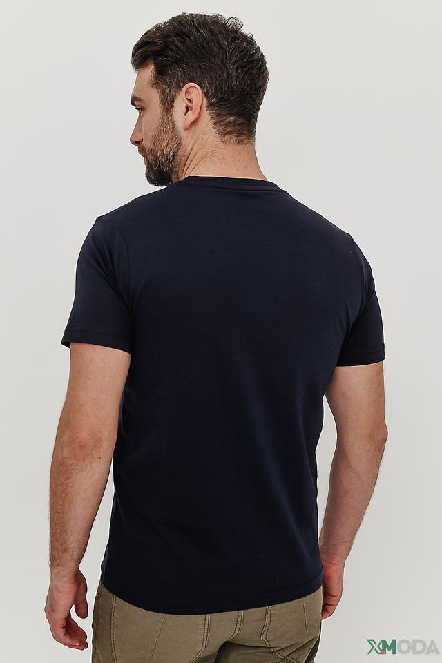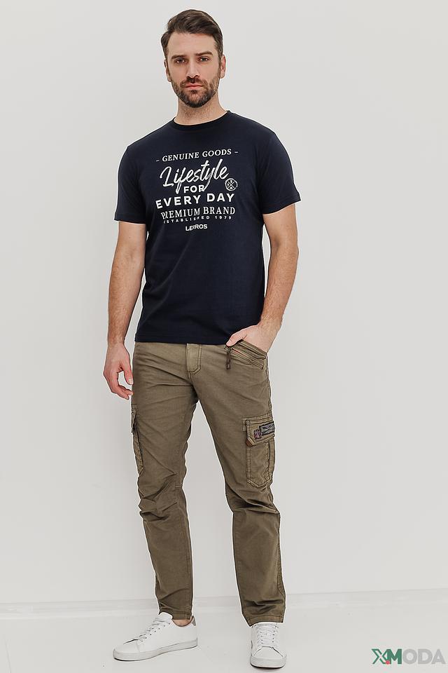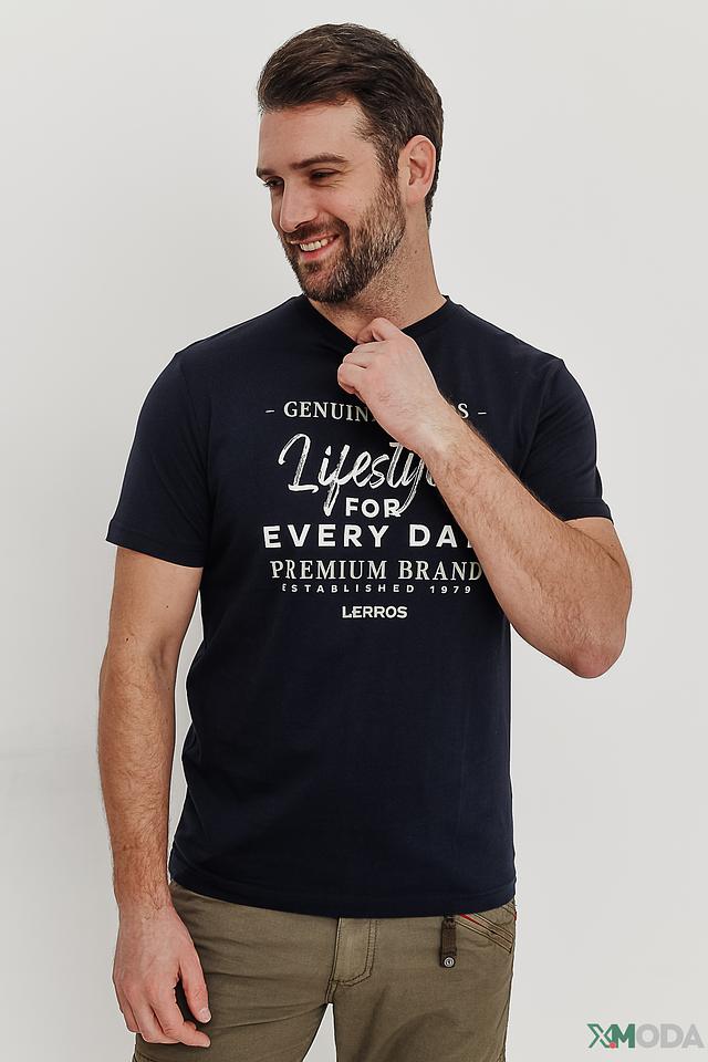 Мужская футболка Lerros тёмно-синего цвета с оригинальным принтом на лицевой стороне. Изготовлена из 100% хлопка, обеспечивающего комфорт и воздухопроницаемость. Стильный и практичный выбор для повседневной носки. Состав: хлопок 100%