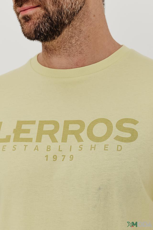 Футболка имеет классический прямой крой, который подходит для любого типа фигуры. Особенностью модели является нанесение логотипа бренда Lerros и года основания – 1979 – на груди. Цвет футболки – светло-жёлтый, нежный и приятный глазу.