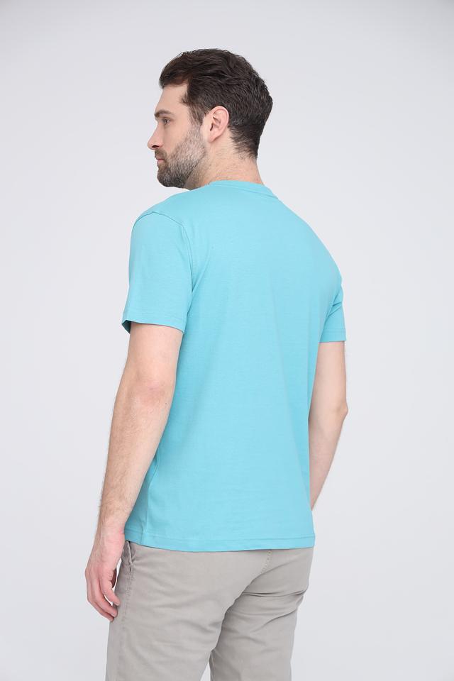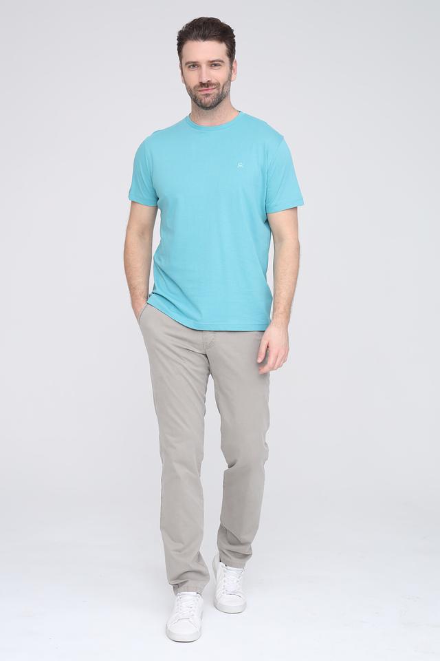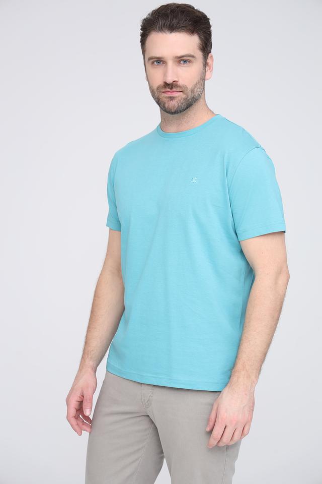 Отличительной особенностью данной модели является её насыщенный бирюзовый цвет, который добавит яркости вашему образу. На груди расположена небольшая вышивка с логотипом бренда, выполненная в тон изделия. Круглый вырез горловины и короткие рукава обеспечивают свободу движений.