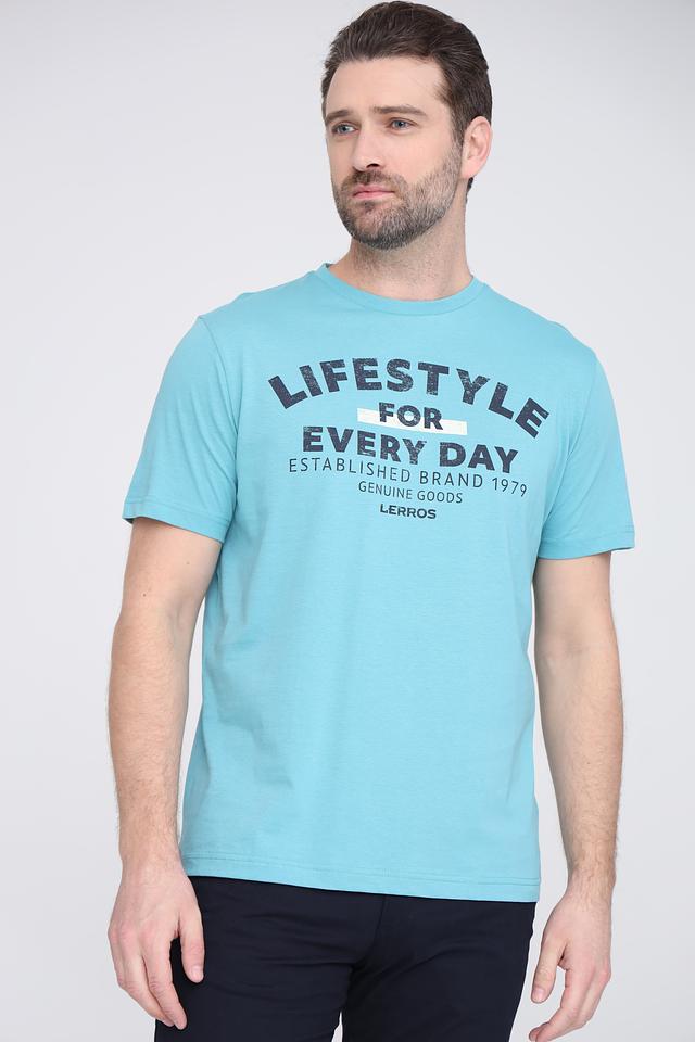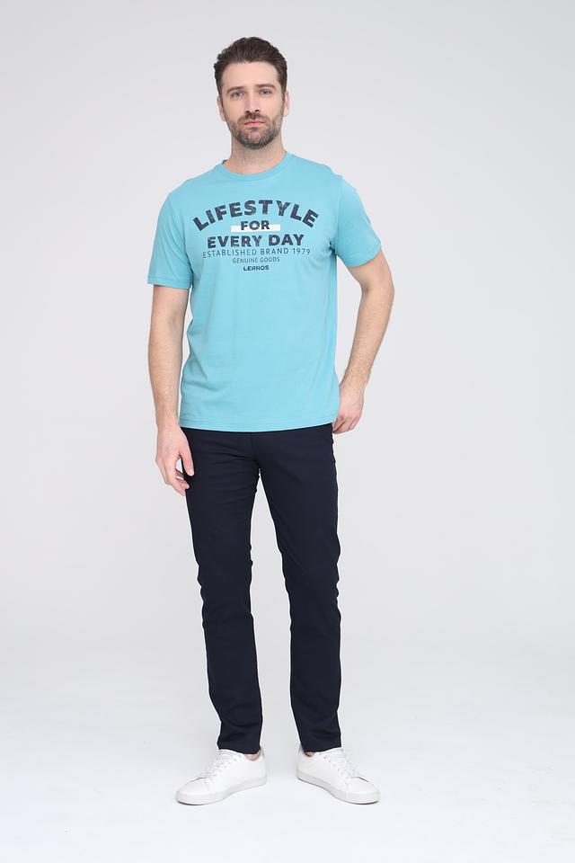 Мужская футболка Lerros бирюзового цвета с ярким принтом на груди. Изготовлена из 100% хлопка, обеспечивающего комфорт и воздухопроницаемость. Отличный выбор для повседневного образа. Состав: хлопок 100%
