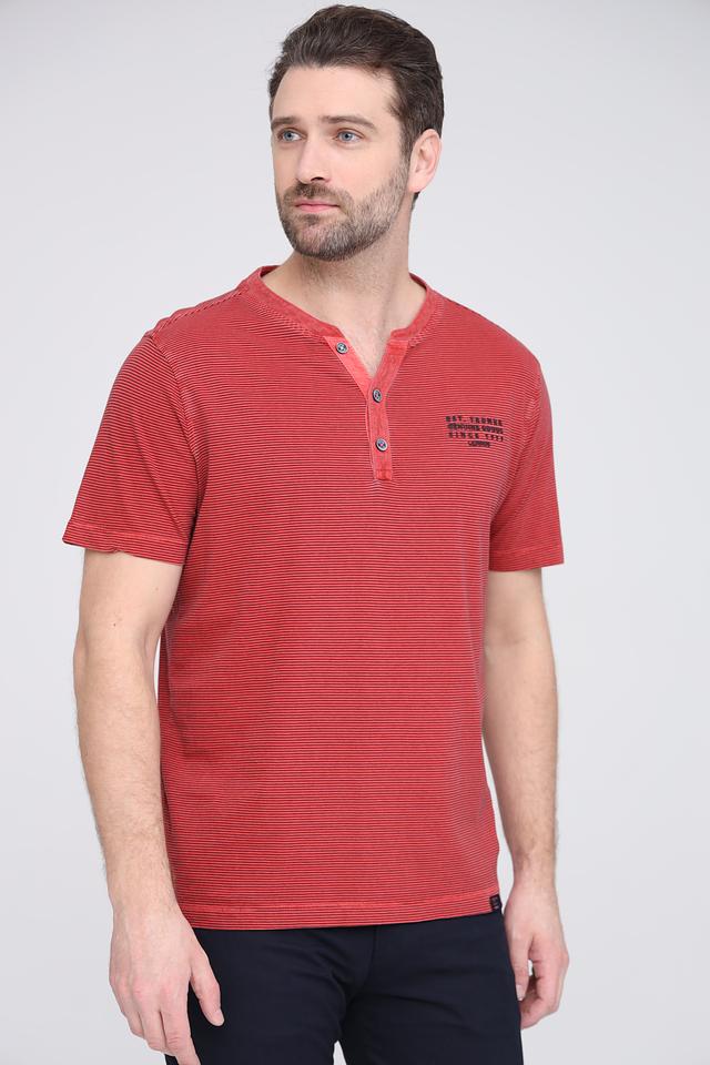 Это мужское поло от Lerros выполнено в красном цвете с выразительным полосатым рисунком. Модель имеет классический крой и короткие рукава, что делает ее идеальным выбором для теплой погоды.