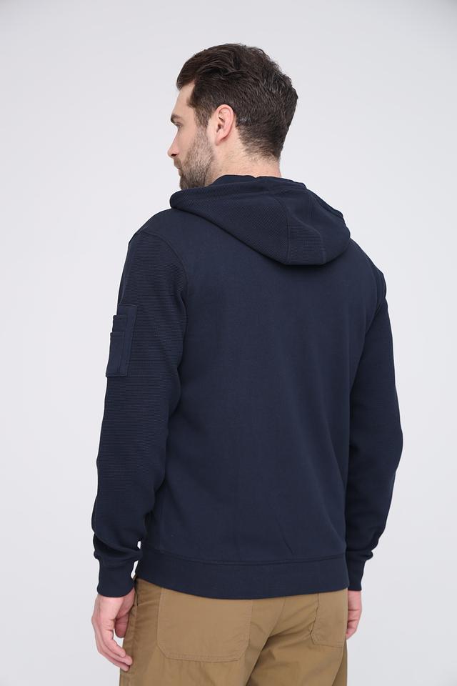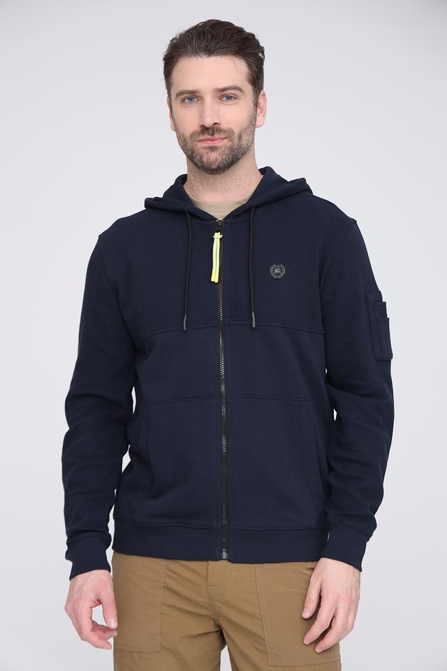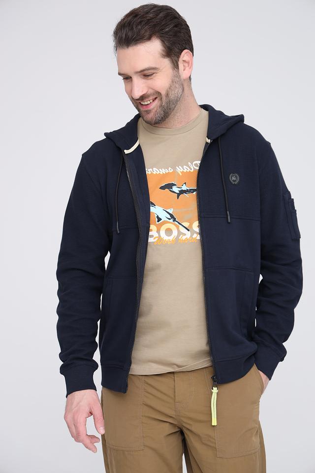 Мужской кардиган Lerros темно-синего цвета на молнии с капюшоном. Модель выполнена из мягкого хлопка и имеет удобные карманы. Стильный и комфортный выбор для повседневной носки. Состав: хлопок 100%