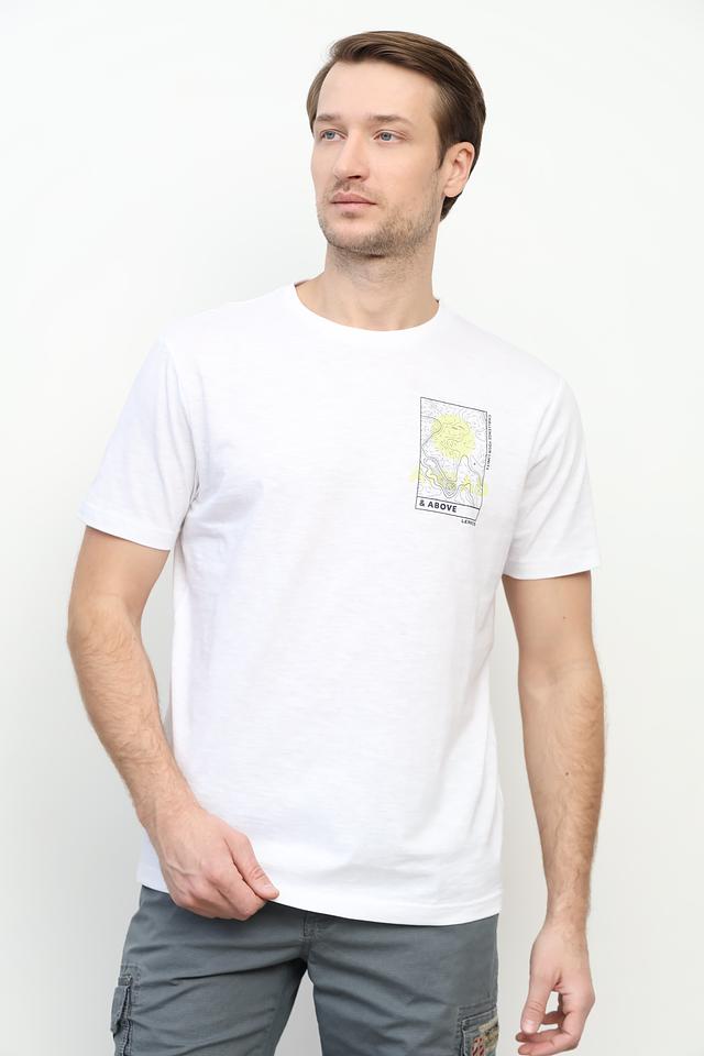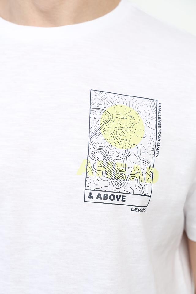 Особенностью данной модели является яркий и стильный принт на груди, выполненный в графическом стиле с элементами горного ландшафта и надписью "& ABOVE". Этот принт добавляет футболке индивидуальности и делает ее отличным выбором для тех, кто ценит оригинальность.