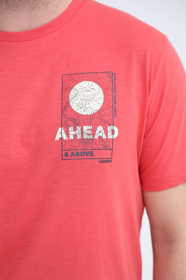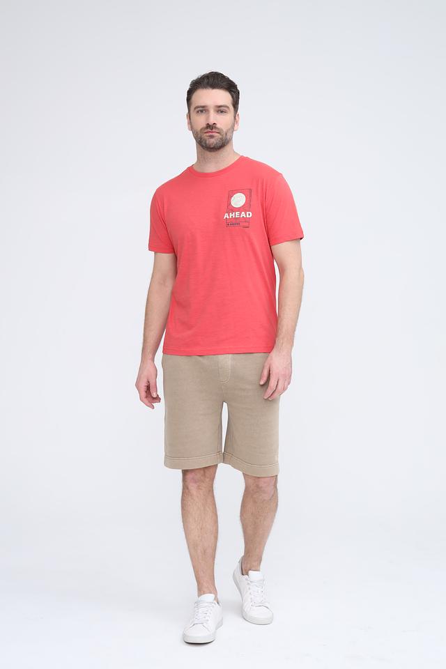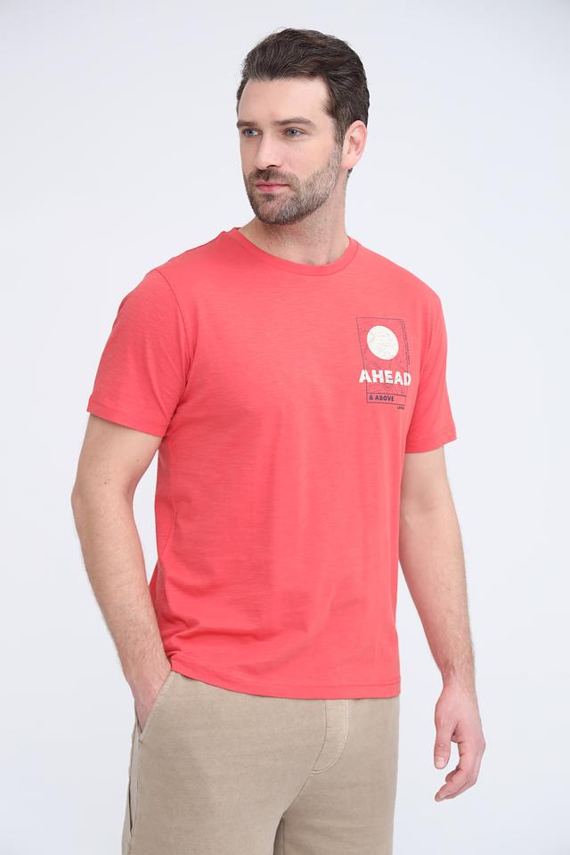 Мужская футболка Lerros терракотового цвета с оригинальным принтом на груди. Изготовлена из 100% хлопка, обеспечивающего комфорт и воздухопроницаемость. Отличный выбор для повседневного образа. Состав: хлопок 100%